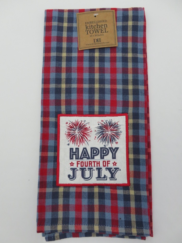 Design Imports ~ Happy 4th Fireworks Embellished Kitchen Hand Towel 18" x 28" inches...