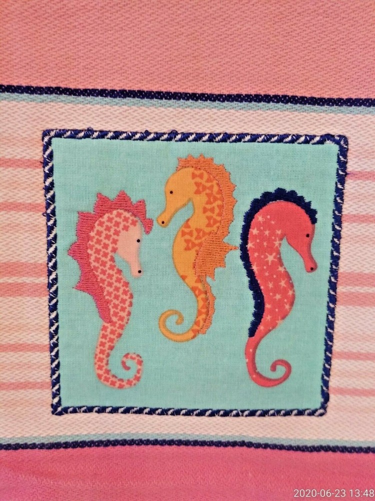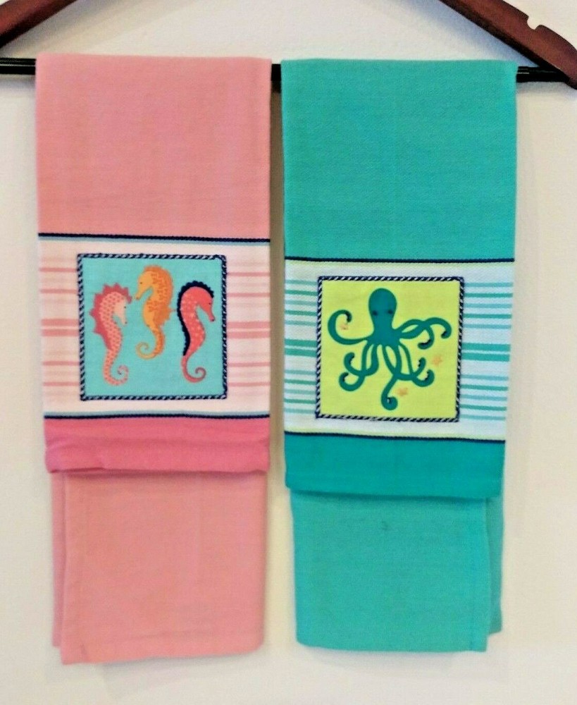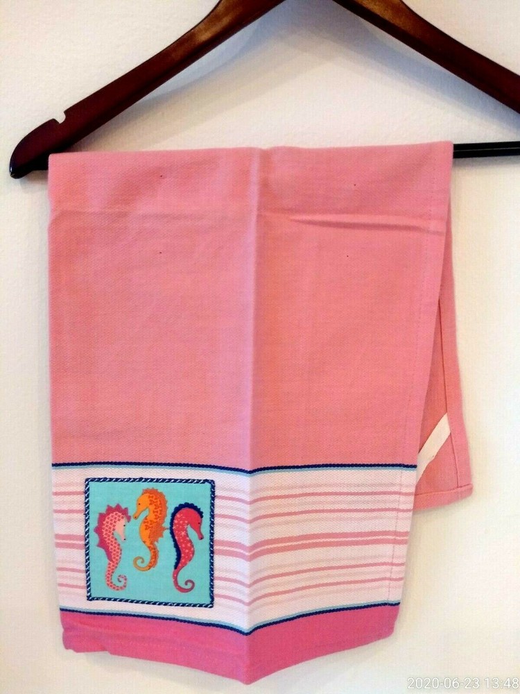 FOR SALE Cotton OCEAN Embellished Dishtowel. 18 x 28". 100% Cotton. Machine wash cold separately Gentle cycle ....