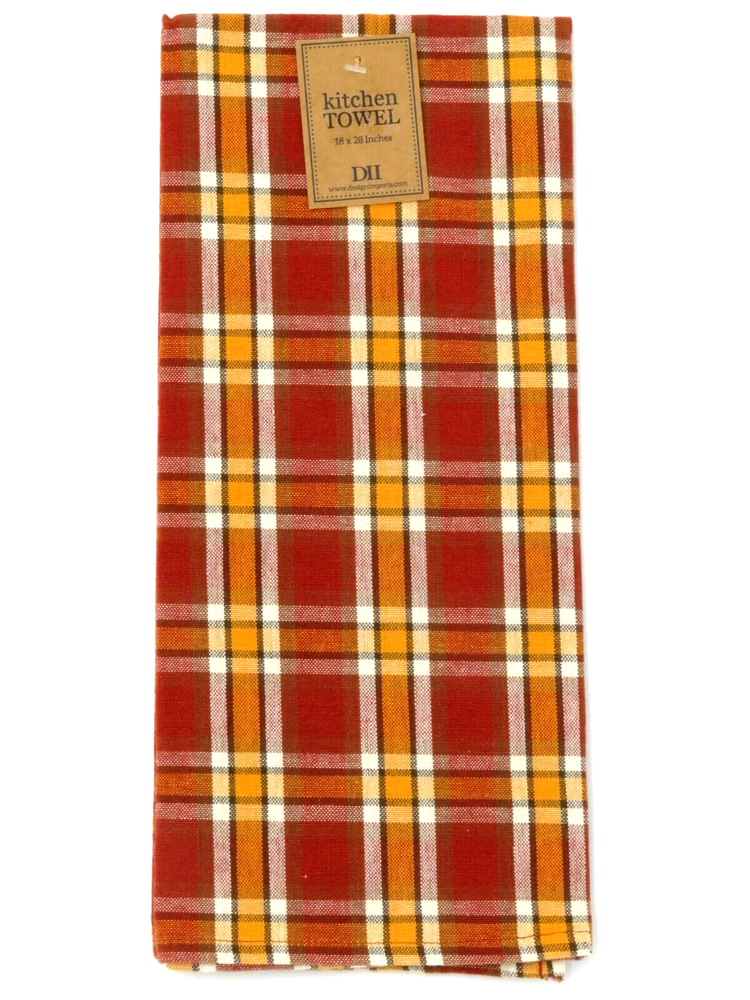 Design Imports ~ Linen Kitchen Towels 18" X 28" inches Fall Plaid...