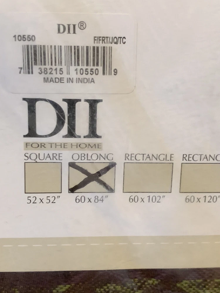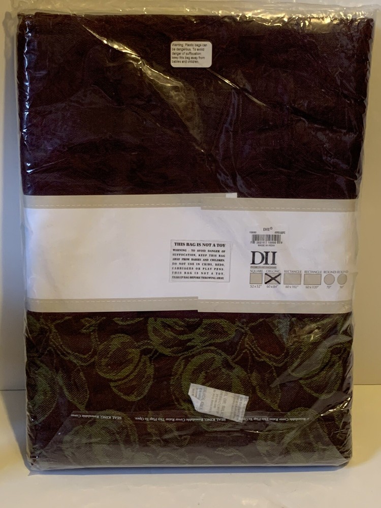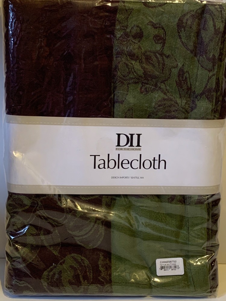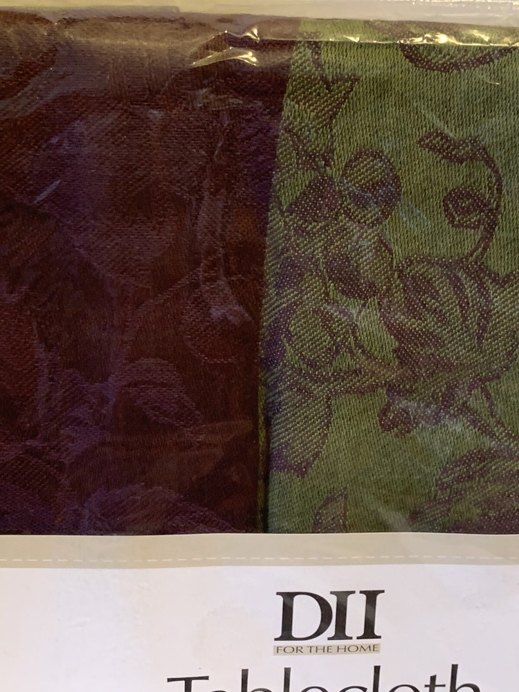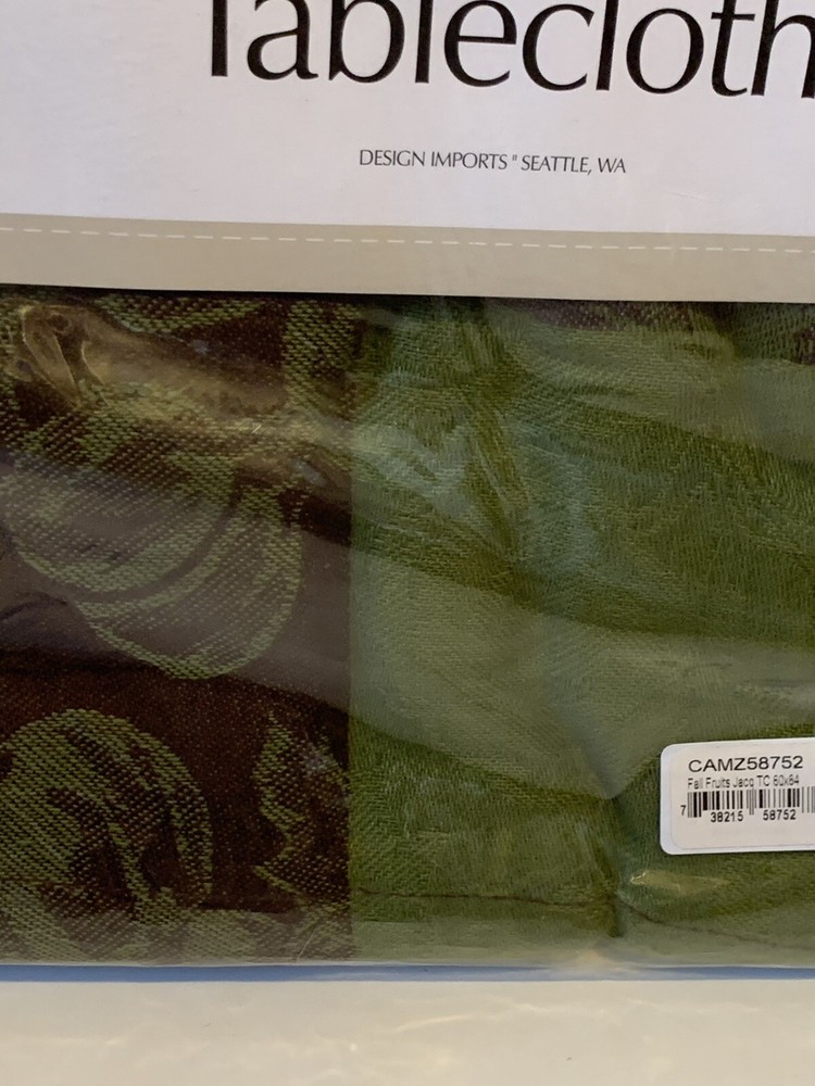 DII For The Home Design Imports Table Cloth Fall Fruits Green Violet Oblong Condition: Brand new in original manufacturer packaging. Square measurements 60" x 84"