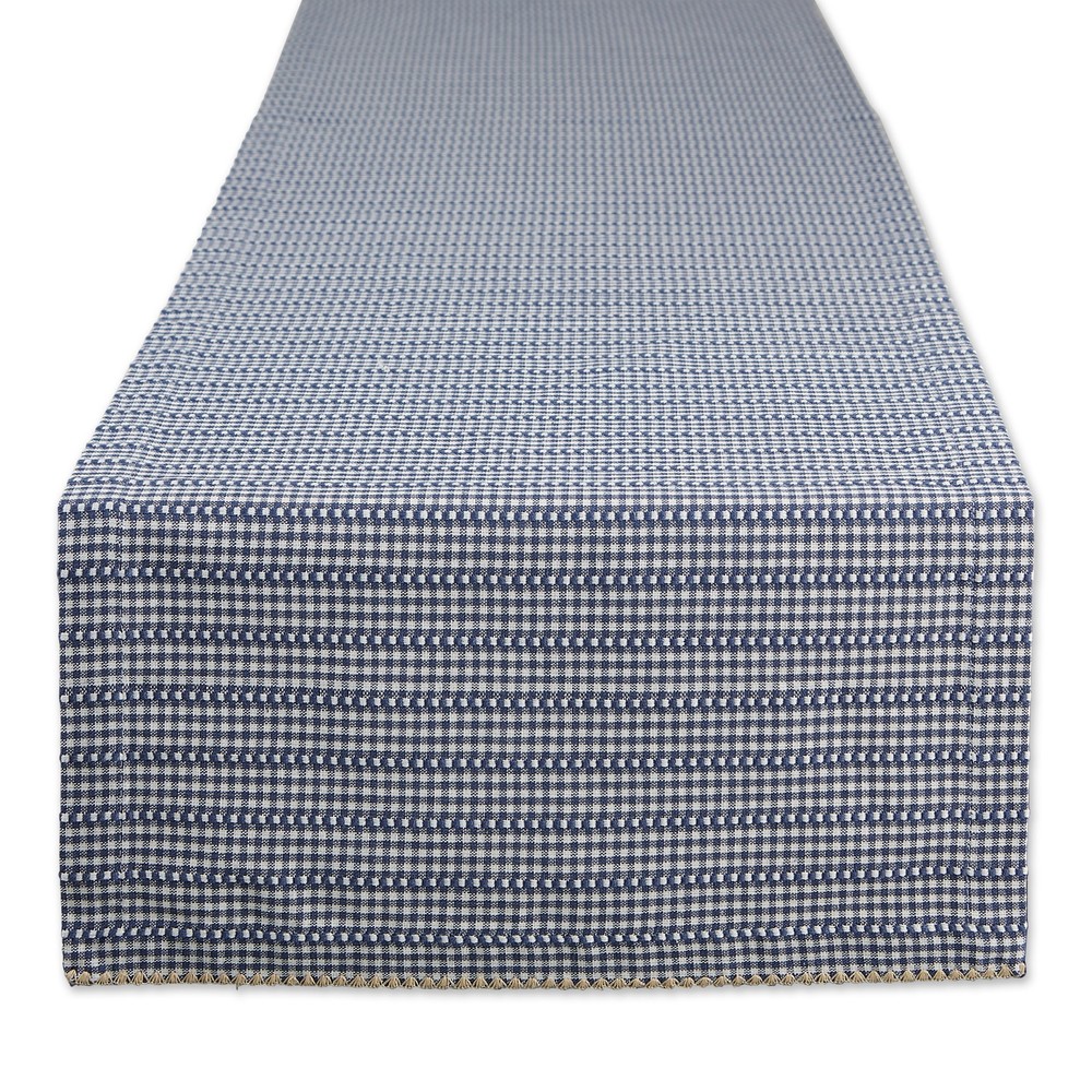 DII French Blue Farmhouse Gingham Table Runner DII French Blue Farmhouse Gingham Table Runner CAMZ12155 Measures 14x108 inches appropriate for a table that can seat 8 10 people. Cotton fabric machine washable gentle cycle tumble dry low. Low iron if needed. Place lengthwise on console tables dining tables coffee tables or entryway tables to instantly update up any room. Runners provide a great place to set down platters to prevent spills and scratches on your tabletop while adding style and flair. We offer delightful home and kitchen products including throws dishtowels doormats blankets and more. Model No CAMZ12155 Brand Design Imports Made in USA DII French Blue Farmhouse Gingham Table Runner Weight 0.75lbs Return Policy Remorse Returns- Return Shipping Buyer Pays + 20% Restocking Fees For Damaged/defective items received- contact us within 48 hrs of the receipt of the item Non-availability/ incorrect address we charge restocking fees of 25% + return shipping charges Return Policy Remorse Returns- Return Shipping Buyer Pays + 20% Restocking Fees For Damaged/defective items received- contact us within 48 hrs of the receipt of the item Non-availability/ incorrect address we charge restocking fees of 25% + return shipping charges