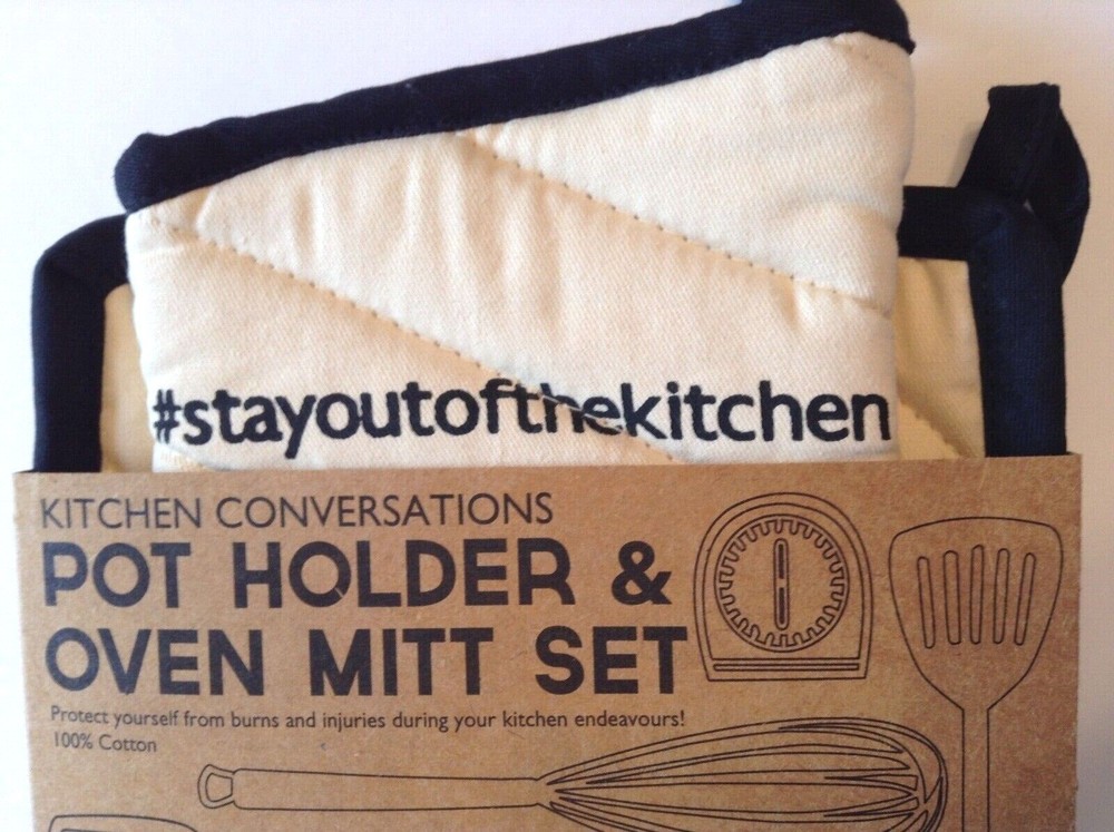 This oven mitt and pot holder set is hilarious and practical—perfect for any cook who needs some space in the kitchen! The natural cotton with bold black lettering looks clean and stylish, and the sturdy construction feels durable. Great as a fun gift or a cheeky way to keep helpers at bay. Easy to care for and ready for action—love it!