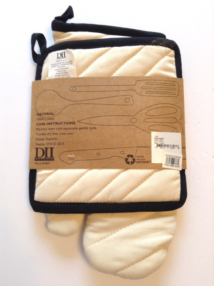 DII Kitchen Conversations Pot Holder & Oven Mitt Set #stayoutofthekitchen NEW Funny kitchen set by would be a great gift for the cook who is having to deal with too many people in their kitchen. Natural colored 100% cotton (1) oven mitt and (1) pot holder have #stayoutofthekitchen printed in black on both. Since this is brand new and attached to the packaging, I have not taken it out of the packaging. The base color is natural with black borders and writing. Care: Machine wash cold separately. Tumble dry low. Low Iron. Notes from the foster cats....... Thank you for your interest in our foster m om's items....your purchase supports our demand for only the finest kibble and wet food while we await our forever homes. (And new toys to 'lose' under the refrigerator.) Please feel free to contact Foster Mom if you have any questions...she loves to hear from other eBay members. (We think she needs to get out more.) Should you be interested in purchasing more than one item, Foster Mom will be happy to combine shipping into one package if at all possible. Just make sure to send her a "request for invoice" prior to paying so she can make the proper calculations. (We help her with the math.) Once she gets notified that payment is received, she hurries to that room that we are banned from to carefully package your purchase. (We just know she has lots of boxes, packing peanuts and bubble wrap for us to play with...but she babbles something about not all people liking cat hair ... go figure!) We send Foster Mom to the post office with your package within two business days. (We stay home and sleep.)