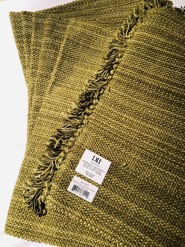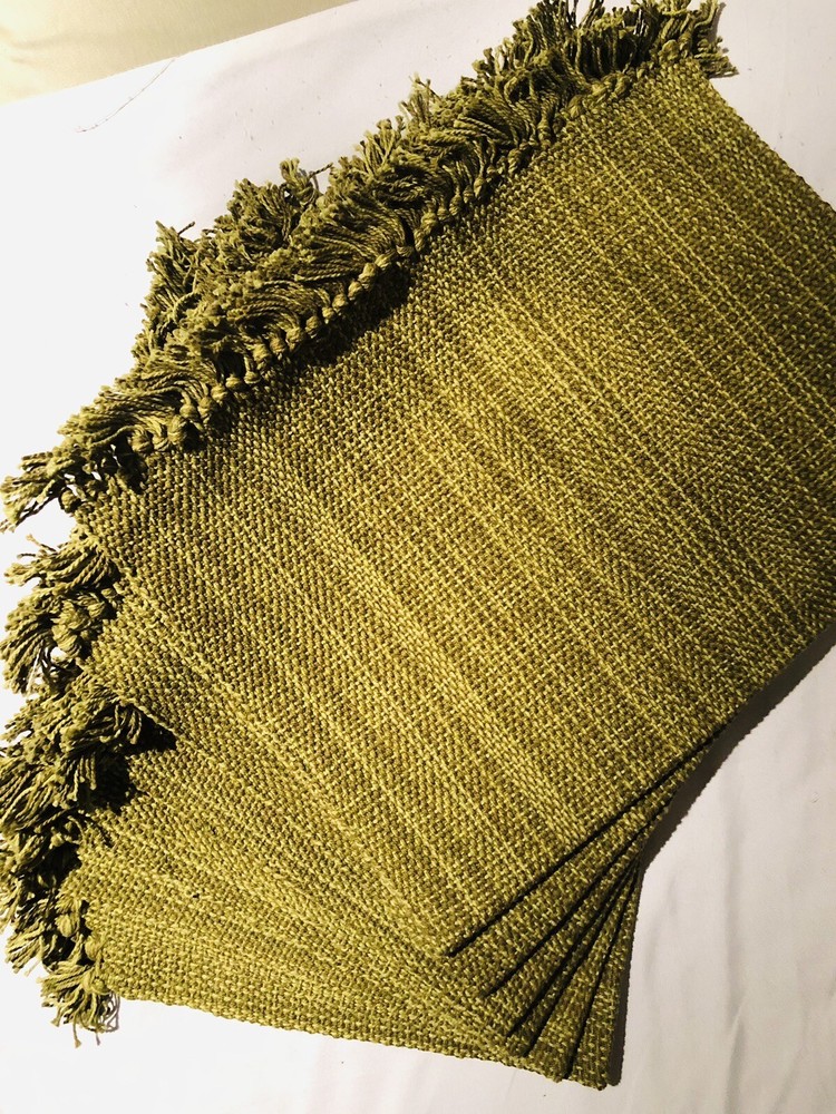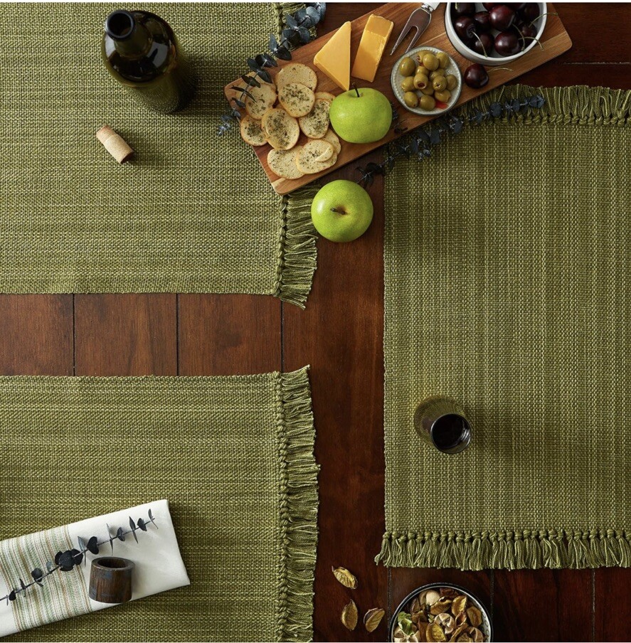 Add a touch of elegance to your dining table with this 6-piece placemat set from DII Variegated Tabletop Collection. The solid olive green color and rectangular shape make them perfect for any occasion, whether it be a casual family dinner or a formal event. Made from high-quality fabric material, these placemats are durable and long-lasting. These placemats are part of the Variegated Tabletop Collection by Design Imports, a well-known brand in the industry. The set comes with 6 placemats, each measuring 13x19 inches in size, making them suitable for most tables. With their simple yet stylish design, these placemats are sure to enhance the aesthetic appeal of your dining area.