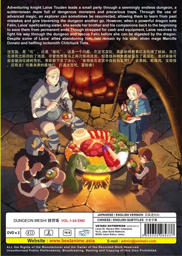 Dungeon Meshi ( Delicious in Dungeon ) ダンジョン飯 Complete TV Series Volume 1-24 End ALL Region / Region Free Free International Shipping **New! Now Comes with English Dubbed! Original Japanese Lanuguage with English Subtitle is Available Condition: Authentic Brand NEW, Original Factory Sealed. Episode: Vol. 1-24 End N o. of Discs: DVD x 2pcs Region Code: ALL Region, Region FREE "0" ( Able to play on DVD Players throughout the World ) Audio Language: English / Japanese Subtitles: English / Chinese ******************************* - We Only Sell Original/Genuine DVDs. All DVDs I'm selling are from Licensed Publisher in Malaysia. All DVDs come with Original Sealed Authenticated Sticker / Hologram by Malaysia Censorship Board. Satisfaction Guaranteed ** If doesn't satisfied with your purchase, contact me immediately and we can work out something to solve it. ** ~ FREE Shipping Worldwide by Registered AirMail with Tracking Numbers Provided ~ Delivery Time: ** US, CA, UK, AU, NZ, Europe Countries and Asia Countries takes about 9-21 working days to arrive. South America and rest of the world takes about 20-28 days to arrive. Selling Policy Please note that Items will not be delivered until Full Payment has been received. Payment has to be made or arranged within 5 days of purchase. Unpaid item dispute will be filed after that. Handling & Shipping Policy Shipping is FREE Worldwide I only ship to the address stated in your PayPal accounts. IF you have special shipping address request, please specify clearly during your purchase. I do not responsible for any custom fees, import duties or taxes in buyer country. If you do not receive the item in stated period of time, please do not hesistate to contact me. I will reply within 24hrs and will try to solve the problem for you. Returns Policy 30 days returnable. Items must be returned in perfect original condition, buyer responsible for returns shipping cost. Refunds will be arranged thru Paypal. Contacts us Please feel free to contact us if you have any questions. Normally, I will response within 24hrs. Please Check out my other Items for sale! Thanks for looking!