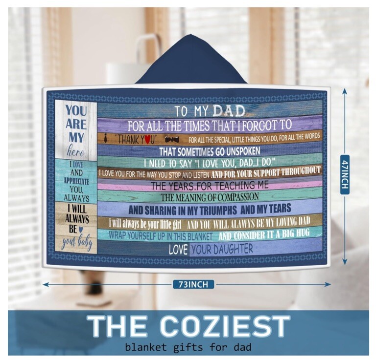 Cute super soft fleece blanket for your dad. Perfect gift to wrap him in a hug everyday.