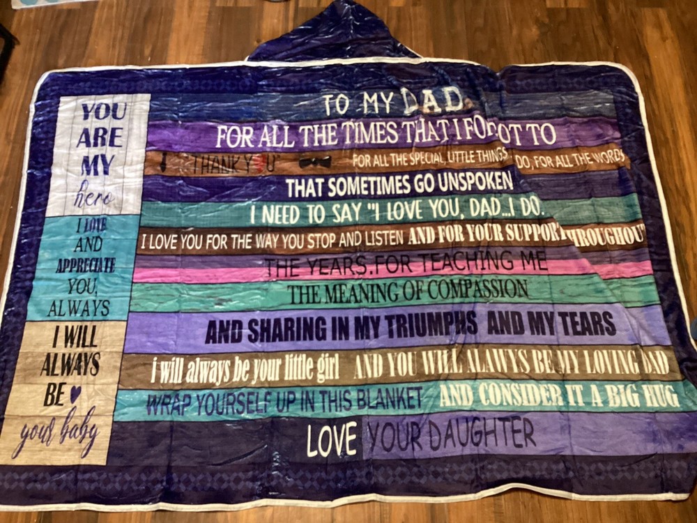 Cute super soft fleece blanket for your dad. Perfect gift to wrap him in a hug everyday....