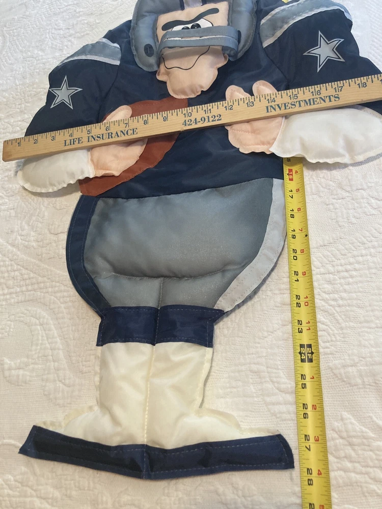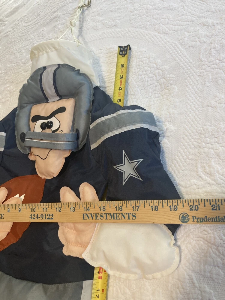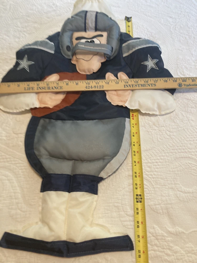 Show off your team spirit with this officially licensed Dallas Cowboys Player NFL Colores WindJocks Flag Wall Logo Wind Sock. Made by WinCraft, this one size fits all flag is perfect for any unisex adult fan of the National Football League (NFL). The blue color and Dallas Cowboys team logo make it a great addition to any fan's collection. This football-NFL flag is perfect for regular season games and is a must-have for any Dallas Cowboys player. It is made in the United States and is a great way to support your favorite team. Add this to your collection of sports memorabilia, cards, and fan apparel today! Since used, the buyer should expect item included to show various signs of wear associated with previous use. This includes stains, scratches, scuffs, rips, tears, torn, pilling, thinned fabric, color faded, worn tags or clipped tags,scratches/tarnishing/discoloration/chipped/worn off or peeling paint or finish, bends and other signs of age/use. Preowned used clothing has been laundered prior to original images being taken with mild detergent, rinsed and dryed before being stored after listing. Deep cleaning is left to the buyer so you can use your preferred cleaner with no allergies, so please be aware and look at all the pictures before purchasing. Preowned jewelry, shoes and other items have been gently cleaned and mild detergent and water. This is done prior to the images being taken. Thorough cleaning or polishing is left to the customer to use whichever products they wish to accommodate for any potential allergies. Attention All Bidders/Buyers: Items are being sold AS IS and not officially certified or tested unless otherwise specified. We do not claim to be experts in any field as our items are defined / described to the best of our ability. Please be sure to contact us with any concerns before bidding or purchasing. We are happy to assist you to the best of our knowledge. Shipping: we do our best to recycle containers and packaging at times so please be aware. Its part of our commitment to reducing landfill space and saving trees and resources. We try to offer various shipping options. If we find that one is less expensive than the other we will use that in order to save money. Also please be aware of USPS lately taking longer to deliver items. We have no control of delivery times once in the hands of the carrier delivering. * Unwanted product returns will be subject to a 15% restocking fee and merchandise must be in unused condition if new and in same exact condition if used when returned. Thank you.