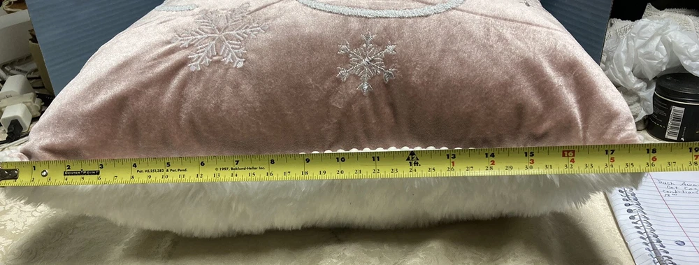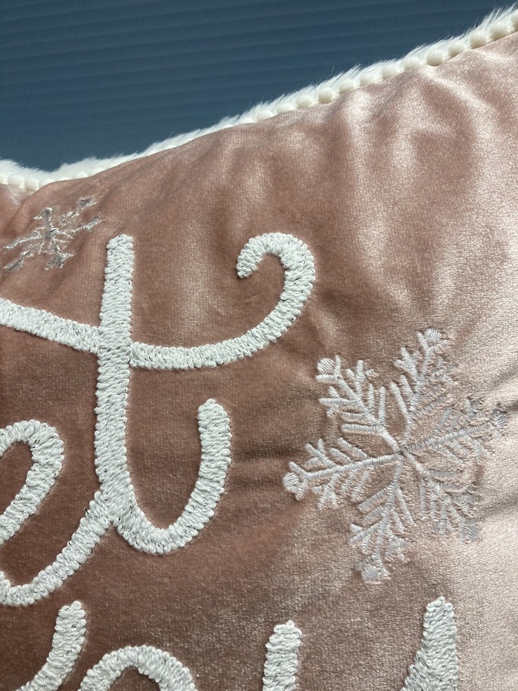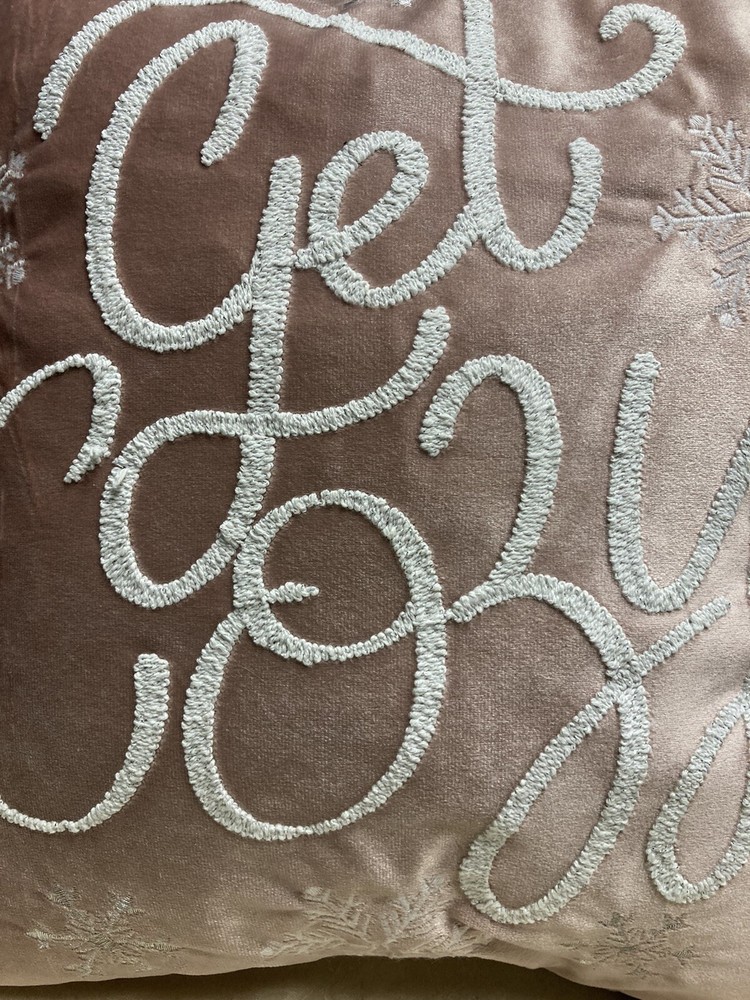Dash Away Home Christmas Decor Pillow Get Cozy 19x19 good condition no stains peachy & white with zipper Preowned