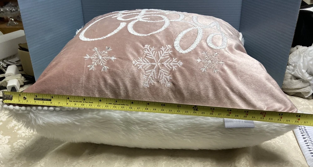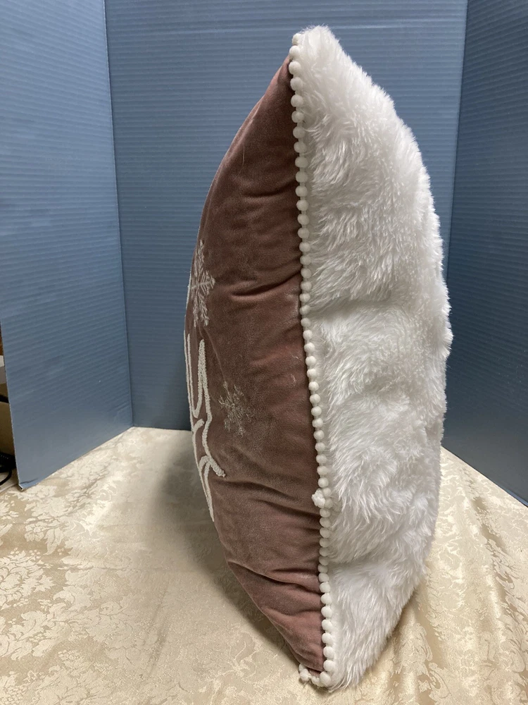 Dash Away Home Christmas Decor Pillow Get Cozy 19x19 good condition no stains peachy & white with zipper Preowned...