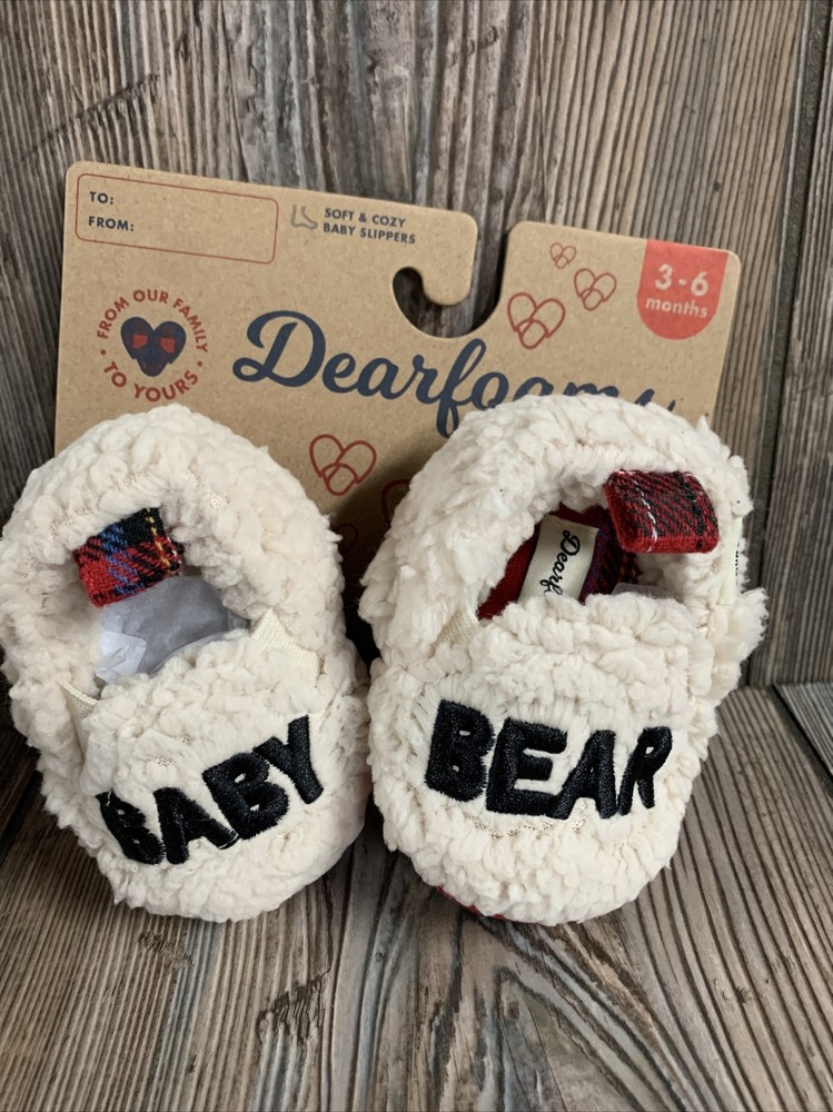 DearFoams Baby Bear Closed Back Slippers 3-6 Months Cozy Comfort *New With Tags*. Perfect for holiday pictures . Baby Bear holiday slippers . Buyer pays flat shipping 3.99