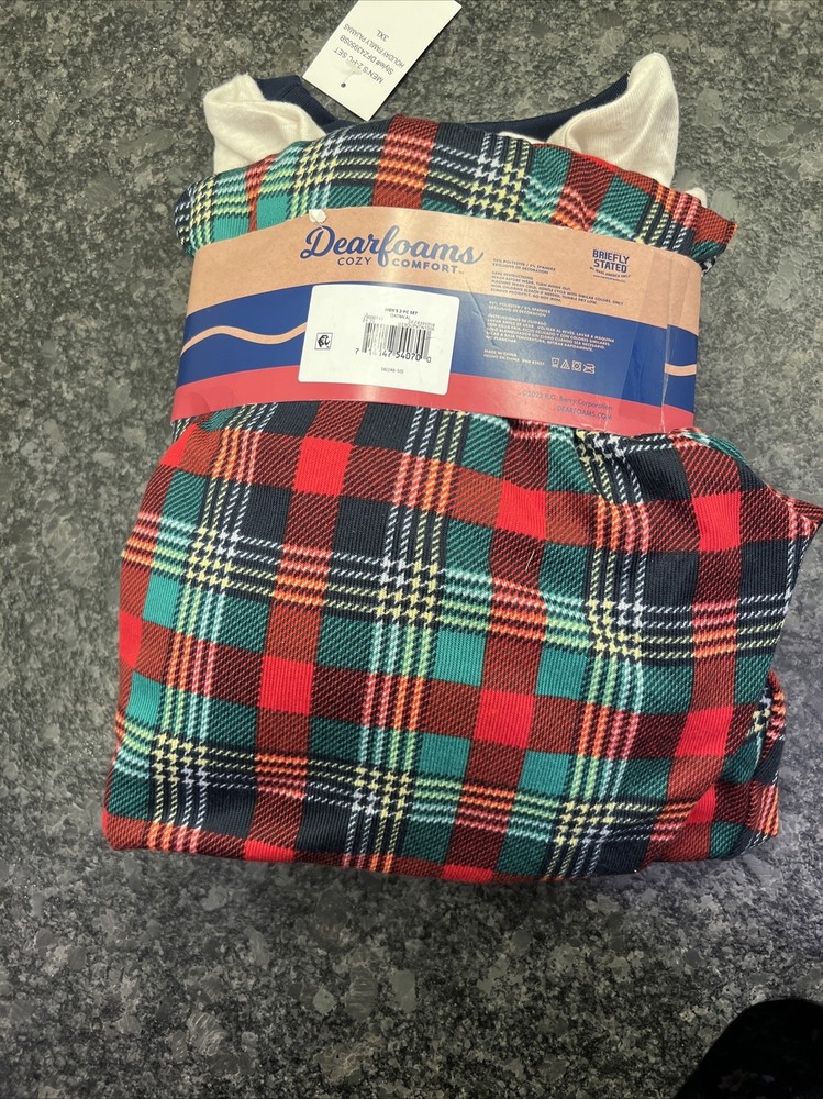 Elevate your sleepwear game with this cozy and comfortable 2-piece pajama set for men from Dearfoams. The set includes a top and bottom both made from high-quality polyester material that ensures ultimate softness and comfort for a peaceful night's sleep. The top features a classic design with a multicolor pattern that is perfect for the winter season. The bottom has an elastic waistband that ensures a snug fit and comes in a 3XL size suitable for men with waist sizes of 48-50 inches. This pajama set is perfect for men who value comfort and style in their sleepwear. The Dearfoams brand is known for its high-quality products that are designed to offer maximum comfort and durability. Order now and enjoy a cozy night's sleep in style! Brand New in original packaging. Thank you for looking!