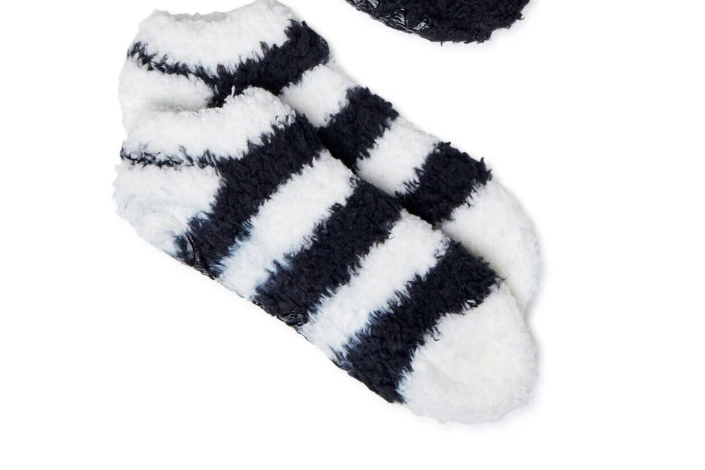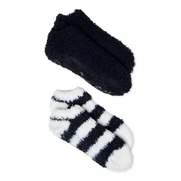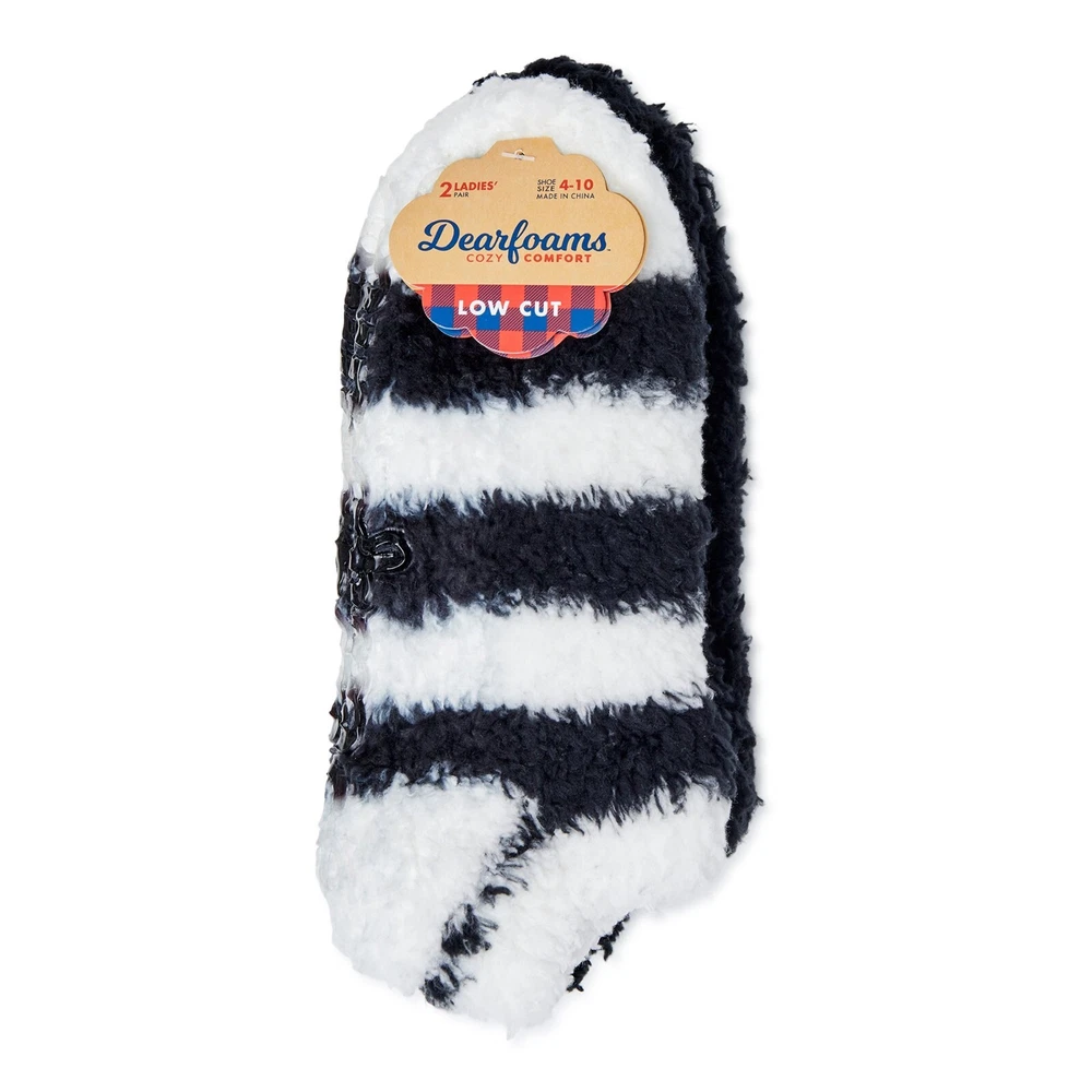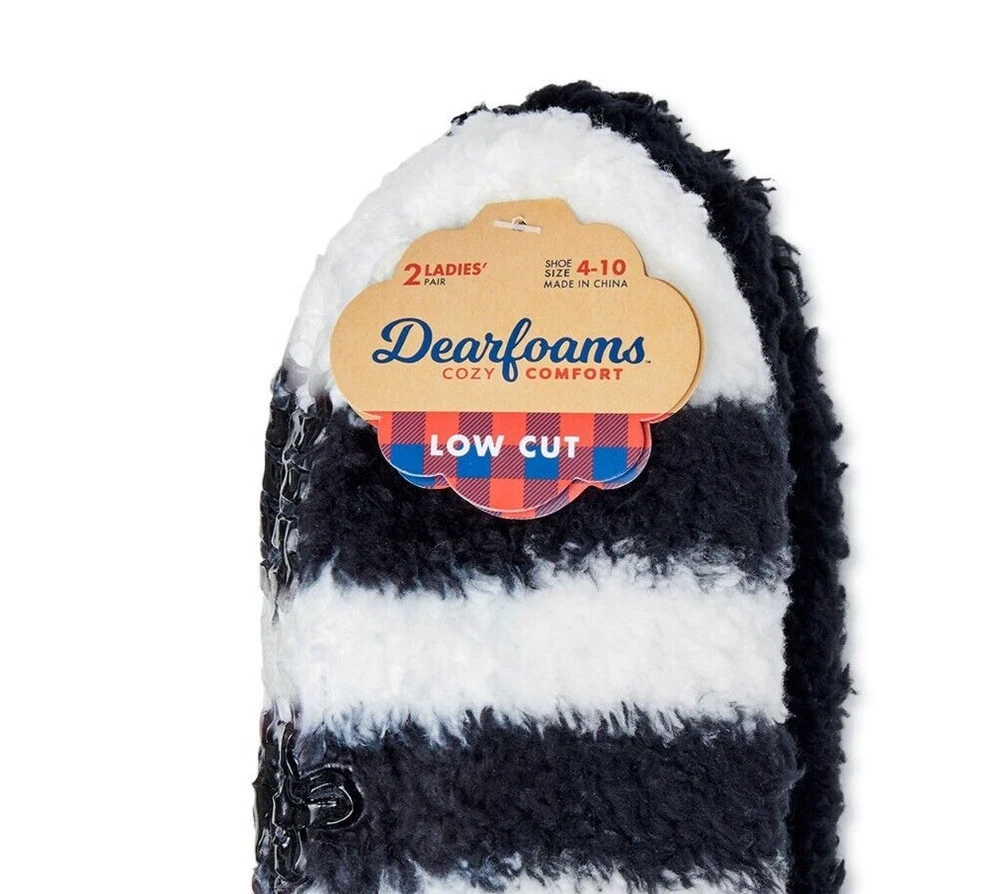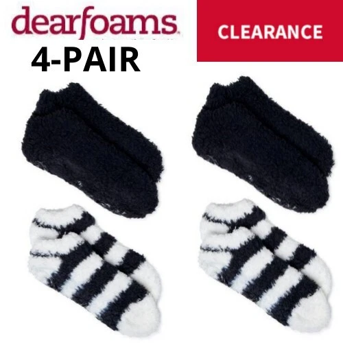 Dearfoams Women's Low Cut Fuzzy Socks, 4-Pack The day has ended and you're ready to relax...kick off your shoes and slip into the unparalleled comfort of Dearfoams' Low-Cut Socks. Part slipper, part sock, this cozy style is a true treat for your feet. Soft and plush, they also feature a gripper Dearfoams logo on the bottom for a no-slip fit. Material: 98% Polyester/2% Spandex Care: Machine washable Country of Origin: Imported Set Includes: Two pairs of socks Size: Sock size 4-10 Features: Non-skid sole; plush and cozy fabric Specifications Brand Dearfoams Gender Female