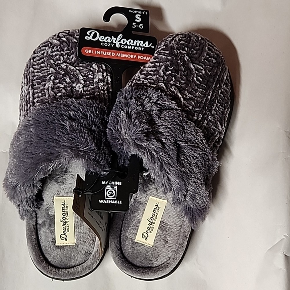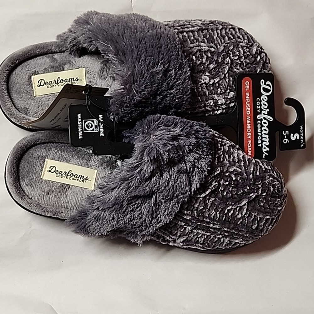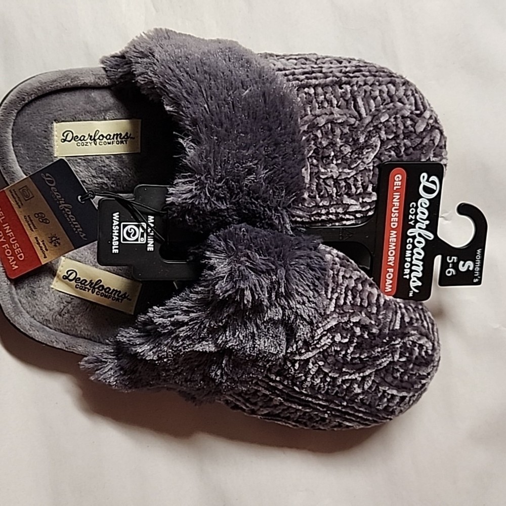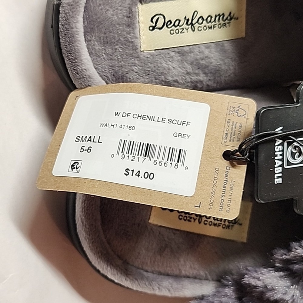 Dearfoams Cozy Comfort Chenille Slippers Scuffs Grey Gel Memory Foam Women's S 5-6...