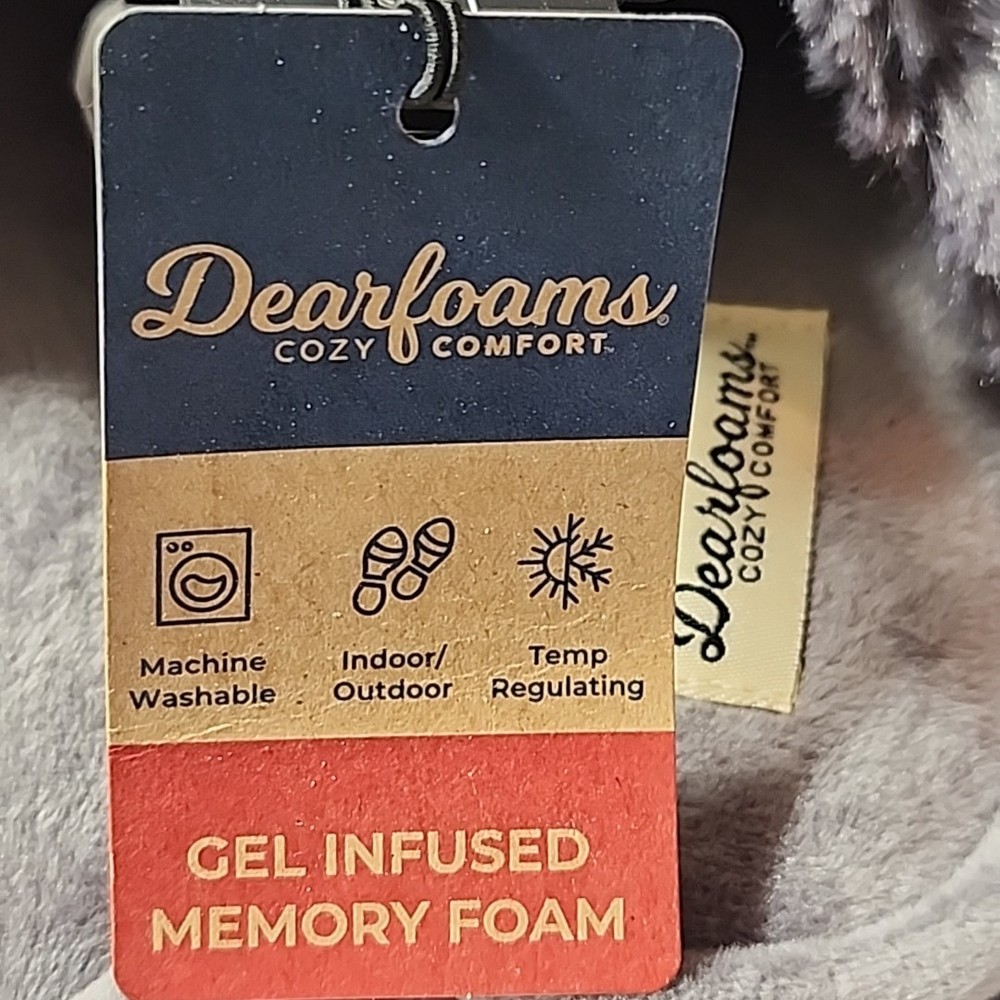 Dearfoams Cozy Comfort Chenille Slippers Scuffs Grey Gel Memory Foam Women's S 5-6