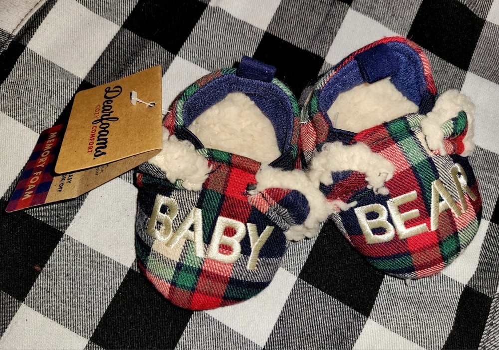 Dearfoams | 🐻 Cozy Comfort Baby Bear Closedback Plaid Slippers Sz 1-2 months. Brand new, never worn. Soooo cute for new baby! Fast Shipping- I typically provide SAME day or next day shipping. 🙂