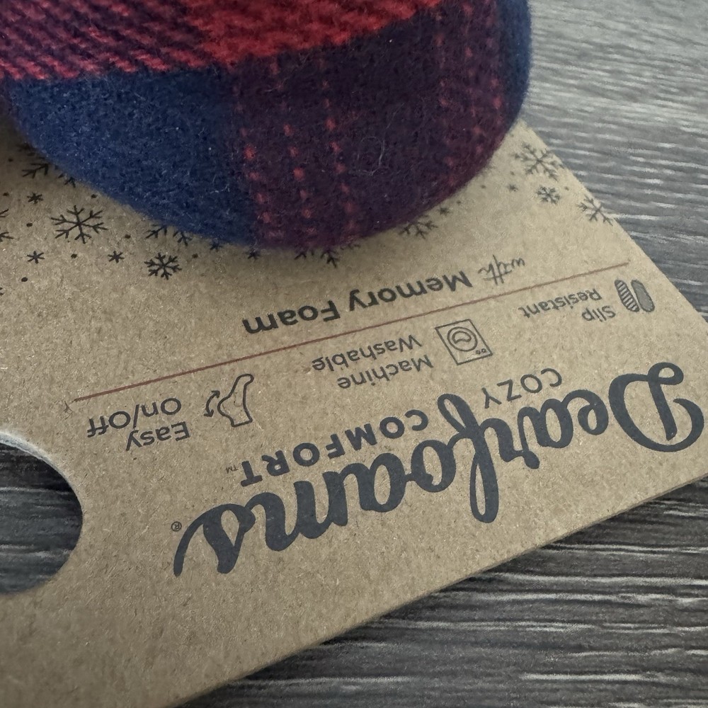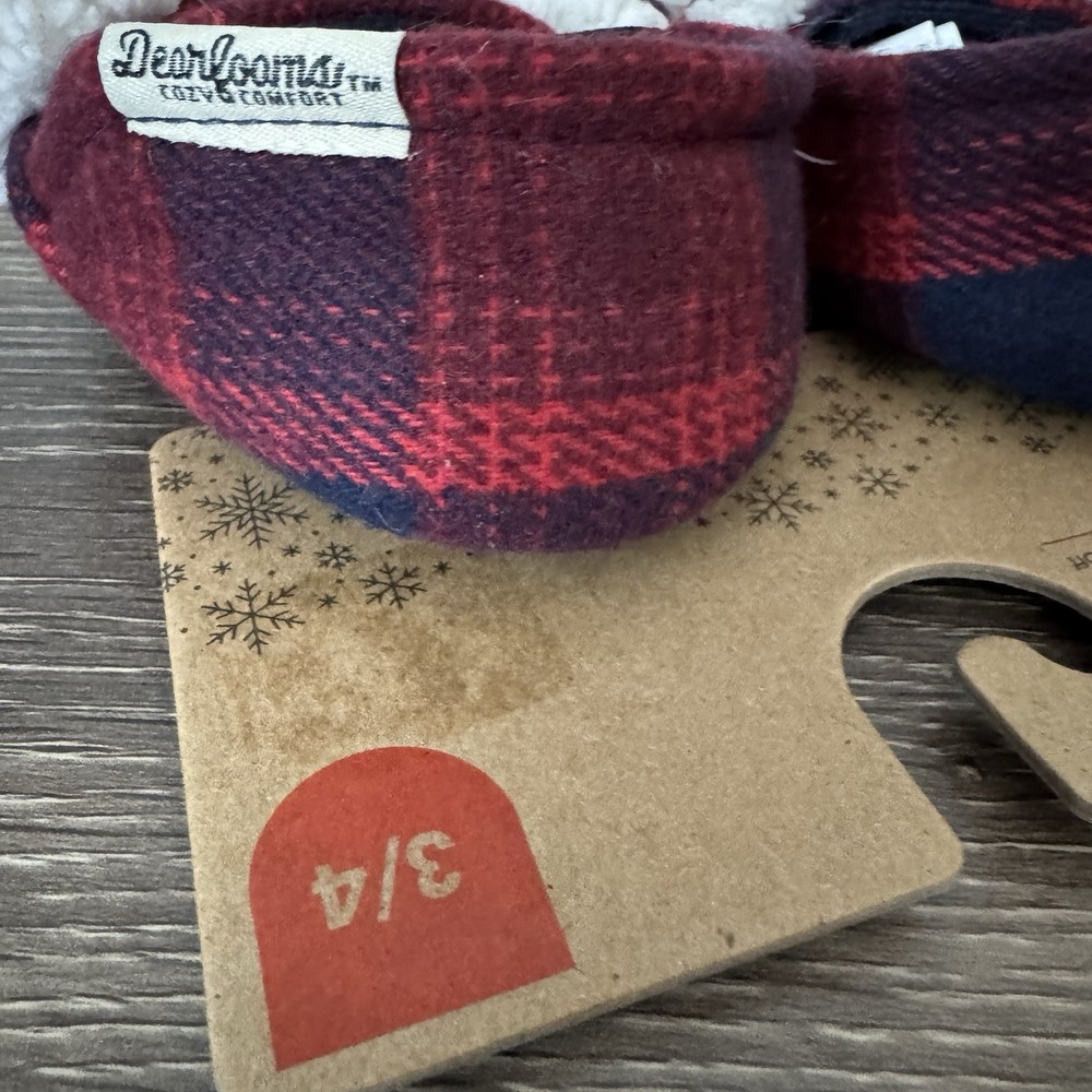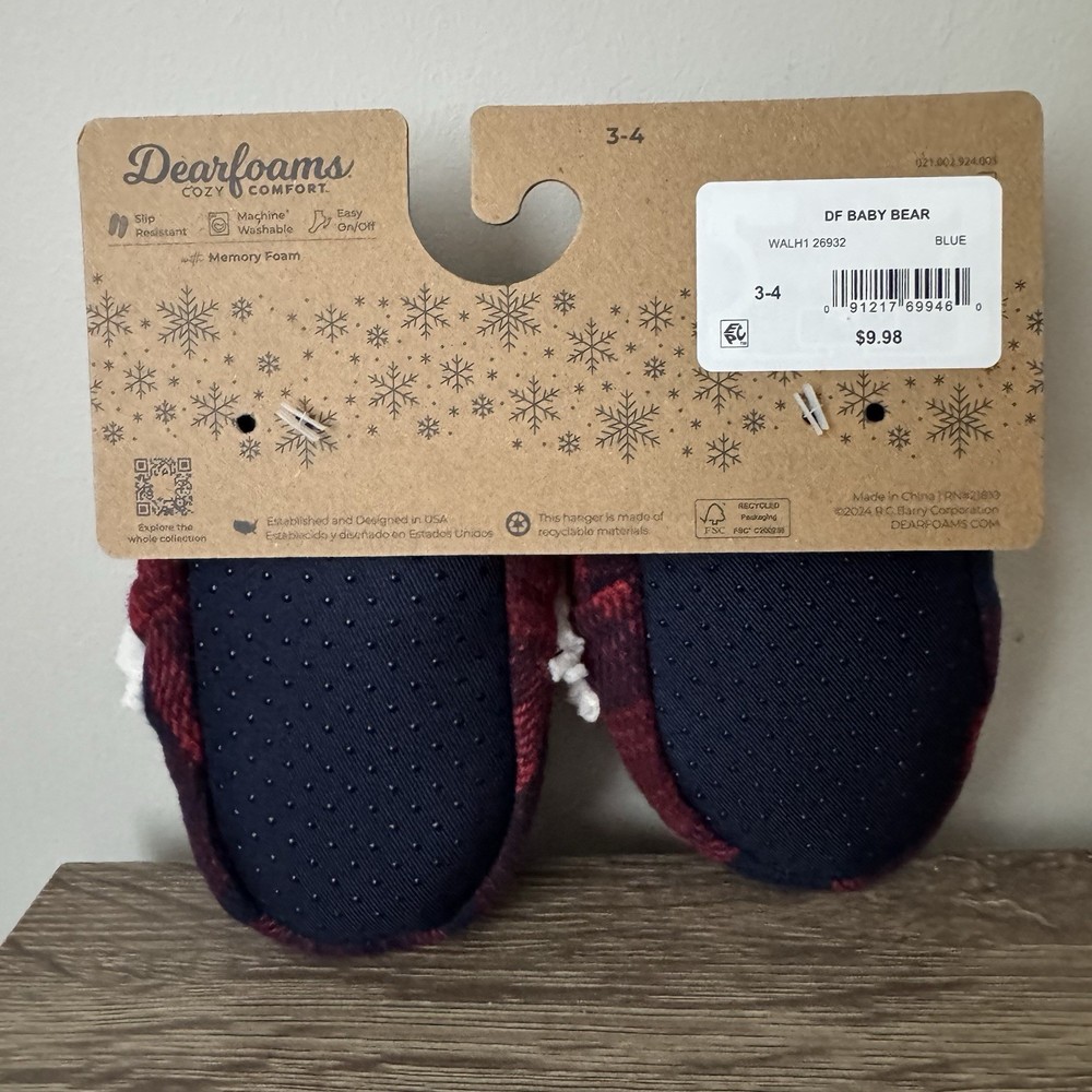 Dearfoams Cozy Comfort Limited Edition Winter Holiday Slippers BNWT Brand New with Tags Baby Size 3 - 4 Appliqued Baby Bear buffalo plaid (navy and red) slippers. Memory foam. Perfect for family matching theme! Ships in a mailer bag for the cheapest route to you!