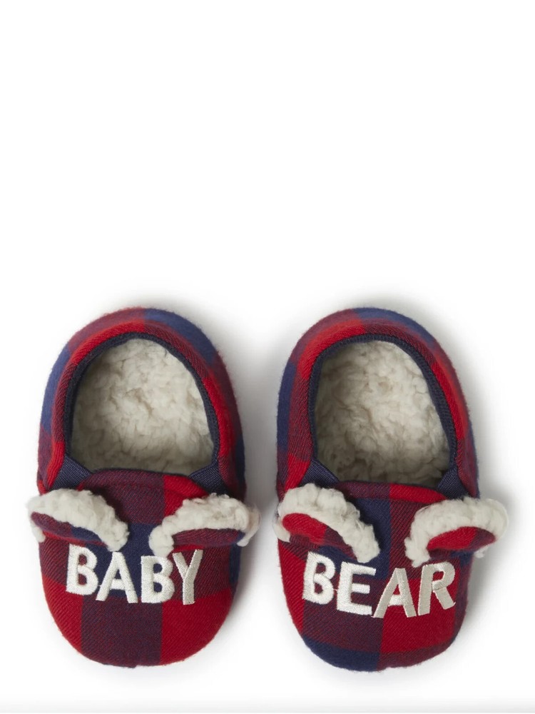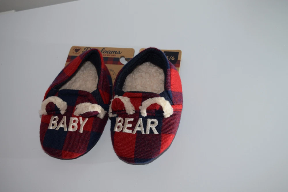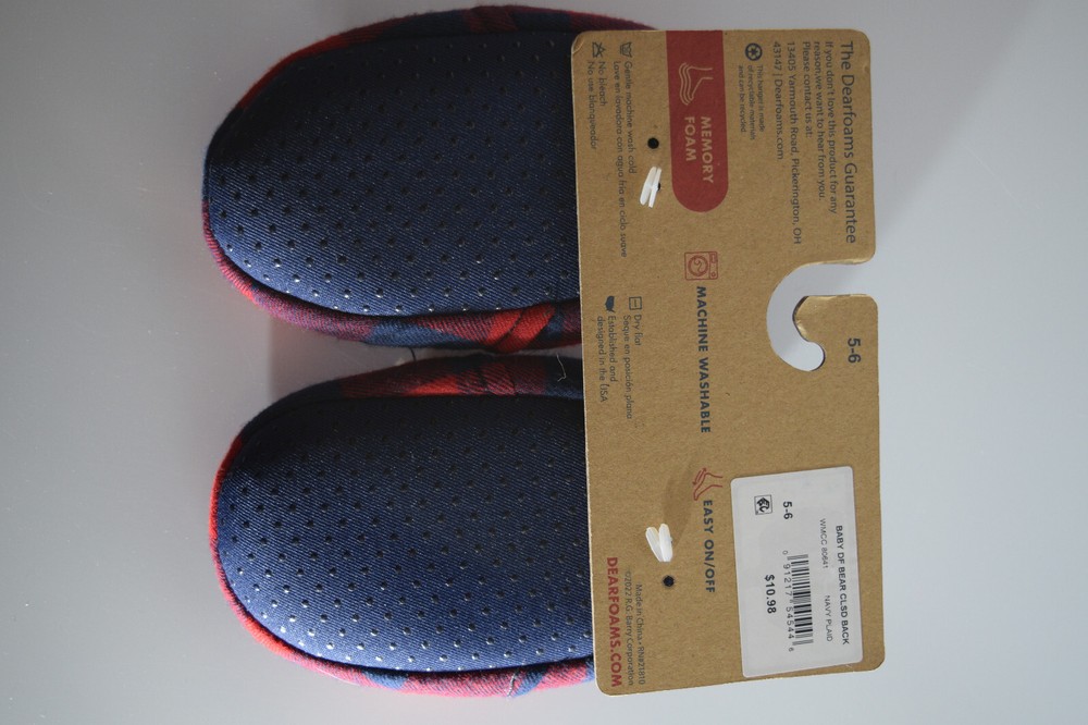 Product details The family that cuddles together, stays together! Perfect for Baby Bear, these slippers feature supersoft memory foam insoles, extra-cozy flannel lining, and charming designs that look too-cute next to the other members of our Matching Family Collection. With styles for Papa Bear, Mama Bear, Lil Bear, and Baby too - everyone can get comfy together! Plaid upper with Baby Bear embroidery. Cozy flannel lining and teddy sock. Complete your family look with our entire collection which includes Mama Bear, Papa Bear, Lil Bear, and Baby Bear styles! Cushioned insole with gel memory foam for added comfort. Specifications Size 5-6 Months Shoe Size 5-6 Months Brand Dearfoams Manufacturer Part Number 091217545446 Manufacturer RG Barry Color NAVY PLAID