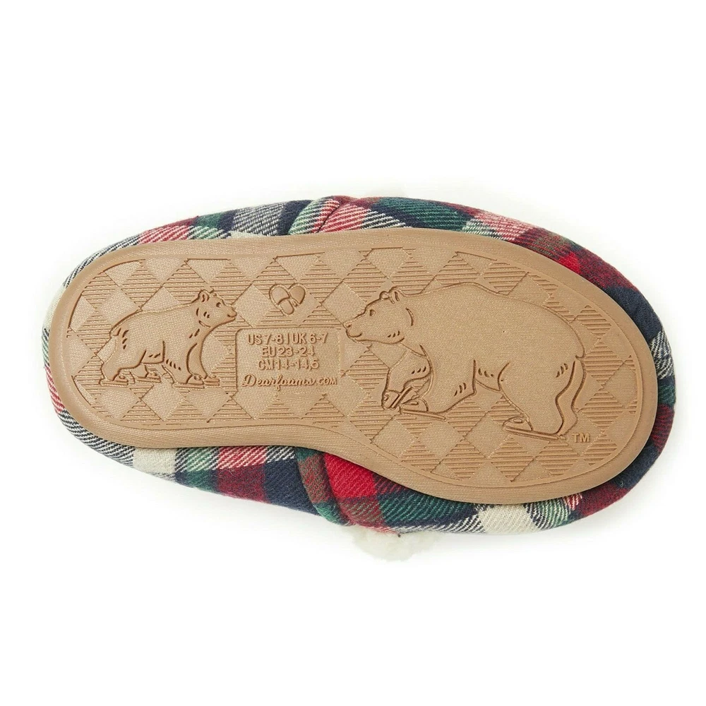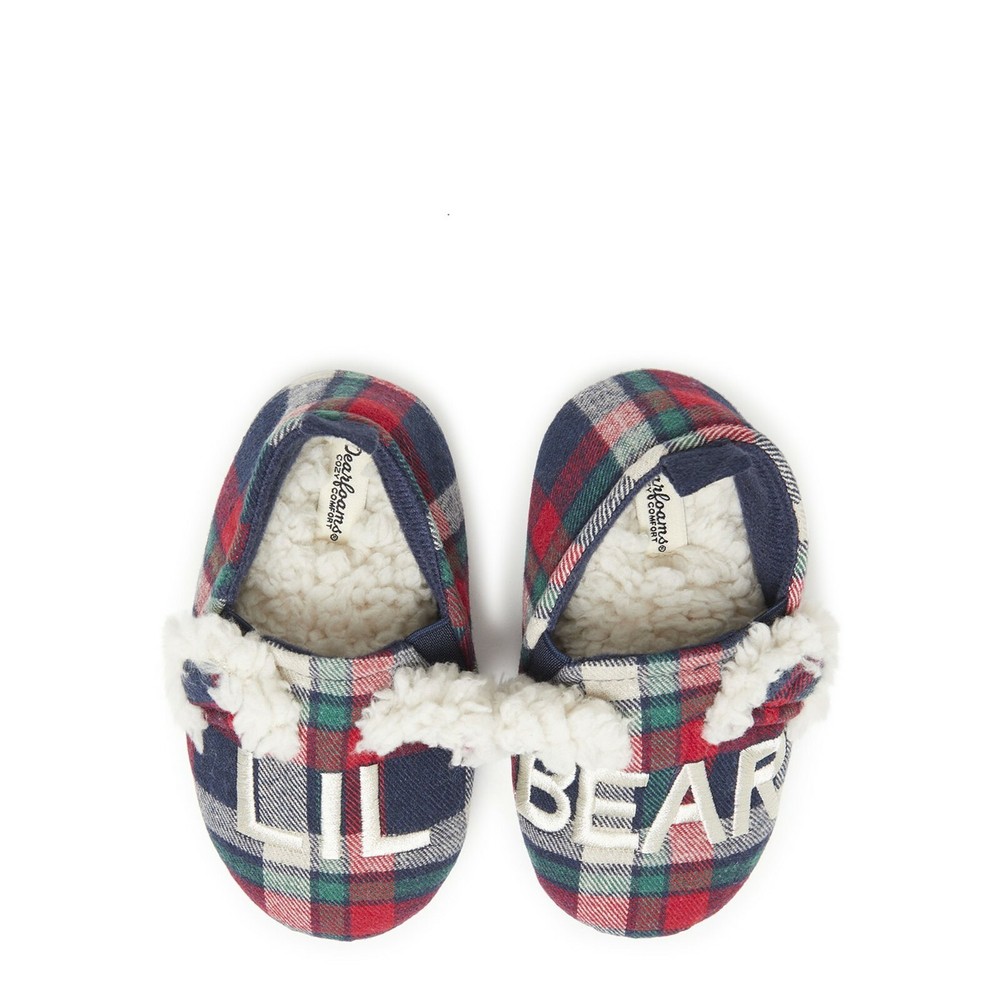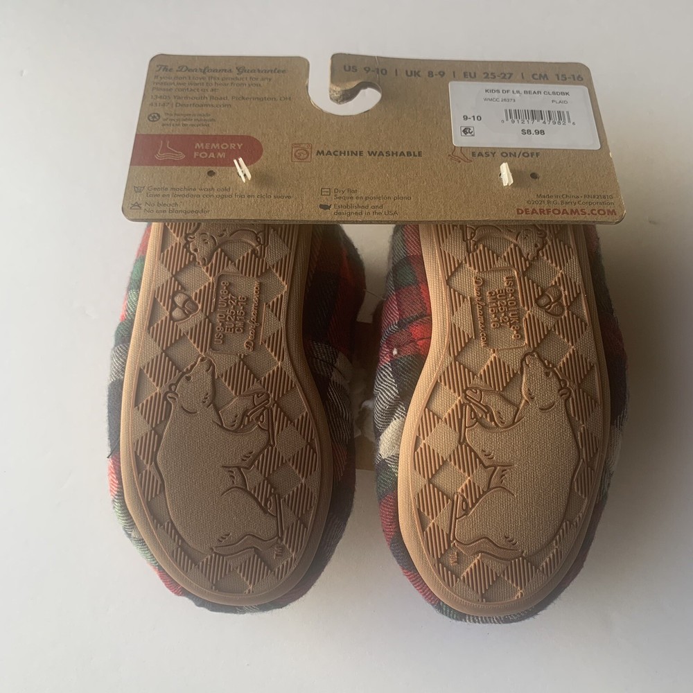 Dearfoams Cozy Comfort Blue White Plaid Lil Bear Slippers Kids Size 9/10 Slippers are brand new with all original tags. Unisex Kids Size 9/10. Slippers are plaid with LIL BEAR embroidered on the upper foot with super soft cozy teddy lining. Features no sweat comfort with DF Adapt that keeps feed cozy and dry. Slippers also feature a cushioned insole with gel memory foam for added comfort. Non-slip, durable outsoles make slippers good for indoor and outdoor use. These too-cute slippers are the perfect picks for get-up-and-go little bears! They're sure to love the supersoft lining, and you're sure to love the charming designs when it's time to capture those picture-perfect moments.