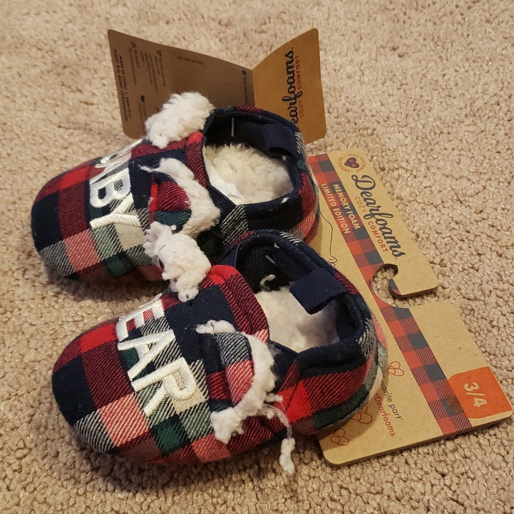 Dearfoams Cozy Comfort Memory Foam Infant Slippers " BABY BEAR" Size 3/4. New unused Free shipping (KK)