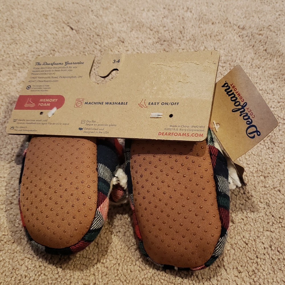 Dearfoams Cozy Comfort Memory Foam Infant Slippers " BABY BEAR" Size 3/4. New unused Free shipping (KK)...