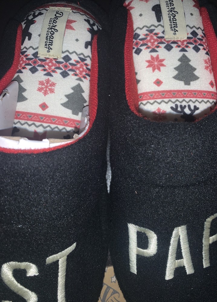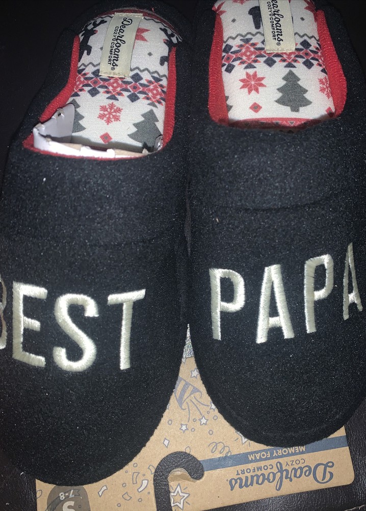 Dearfoams Cozy Comfort Men's Black Holiday Best Papa Slippers New with Tags.