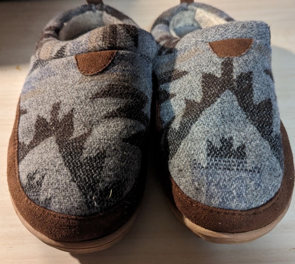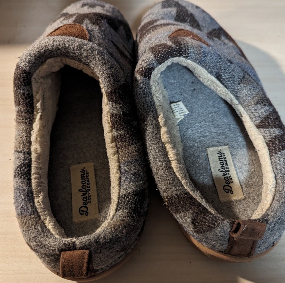 Enjoy ultimate comfort with these Dearfoams Cozy Comfort Men's Slippers. With a geometric pattern in gray color and slip-on style, these slippers are perfect for casual occasions. The flat heel and rubber outsole make these slippers perfect for indoor and outdoor wear, while the fabric lining and foam insole provide a cozy fit. These slippers come in size 7-8 small and have a standard shoe width, making them suitable for most men. Ideal for winter, summer, fall, and spring, these slippers are a must-have for any man's wardrobe. Add these to your collection today!