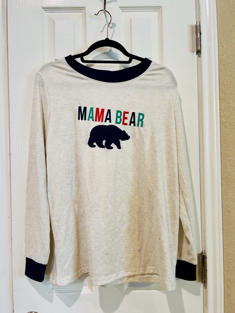 Dearfoams Cozy Comfort Pajama Top Womens Large 12/14 Cream Mama Bear Sleepwear...