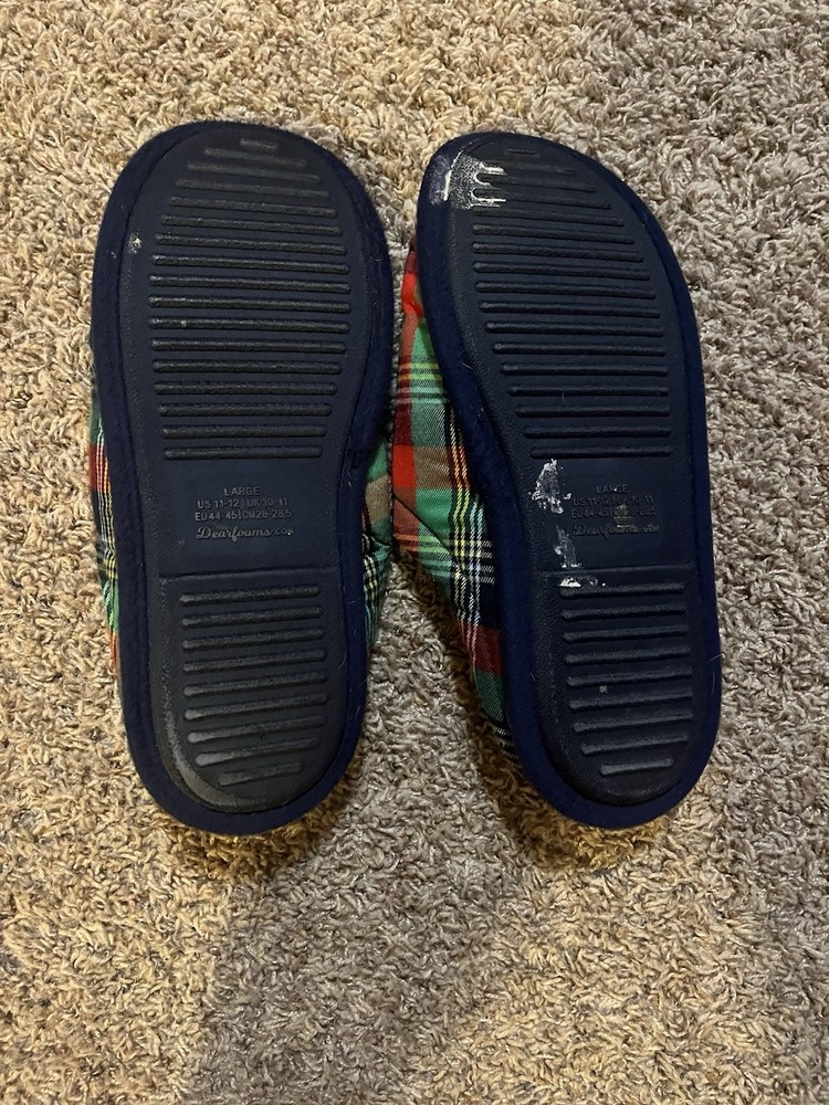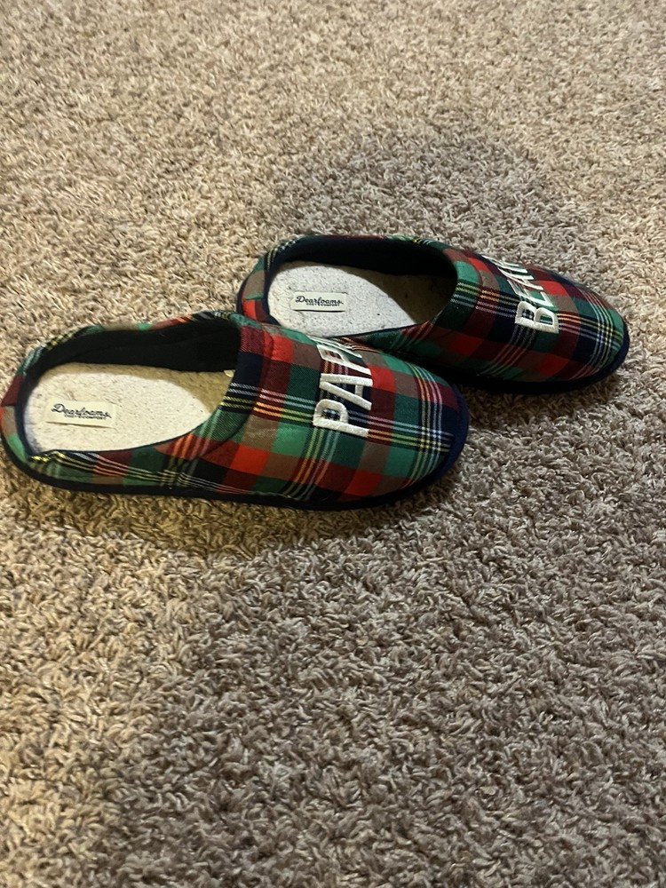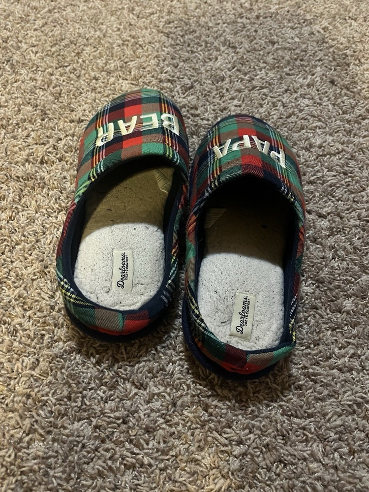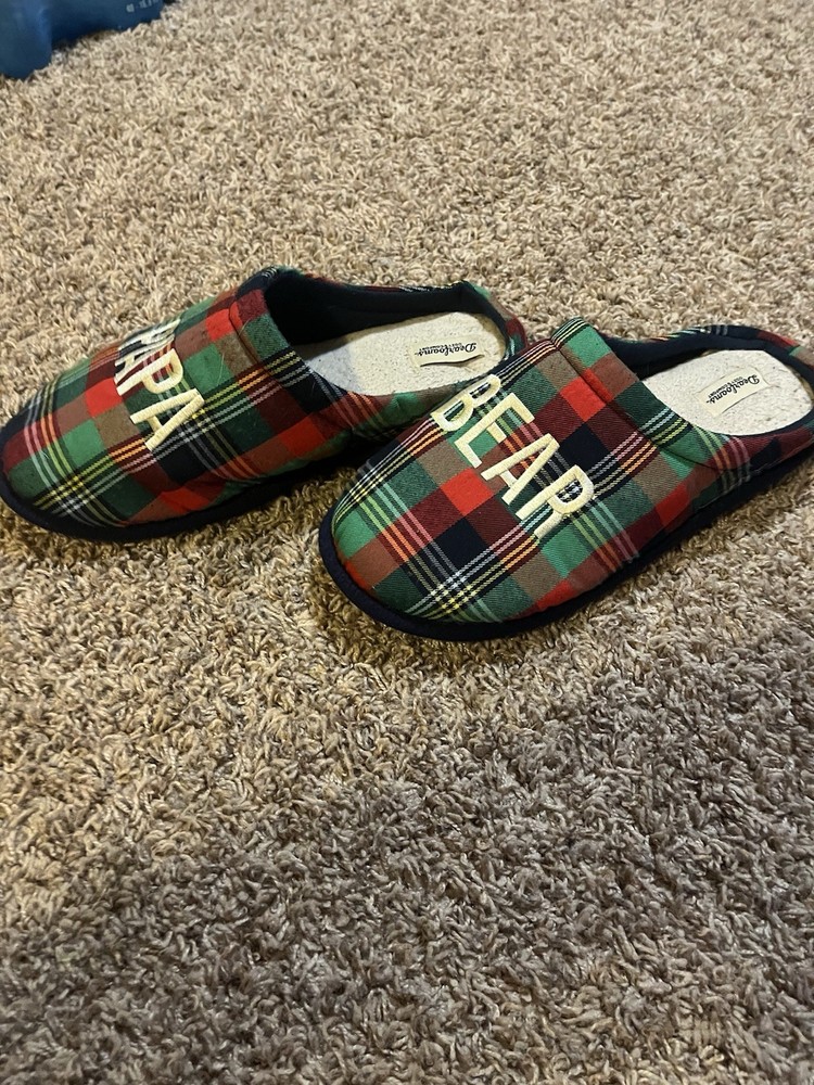 Step into the cozy embrace of the Dearfoams Cozy Comfort "Papa Bear" Plaid Slippers, a perfect blend of warmth and whimsy for your feet. Designed with a plush faux fur lining and a woven plaid upper, these slippers offer a softness that beckons you to kick off your shoes and stay awhile. The bear theme adds a touch of playful charm, while the slip-on style ensures easy wearability. Ideal for lounging around the house, these slippers feature a roomy fit for men's size small (7-8) and are crafted to provide comfort with every step. The plaid pattern exudes a classic, versatile aesthetic that pairs seamlessly with your casual at-home attire. Whether you're sipping coffee or enjoying a lazy weekend, these slippers are your feet's new best friend.