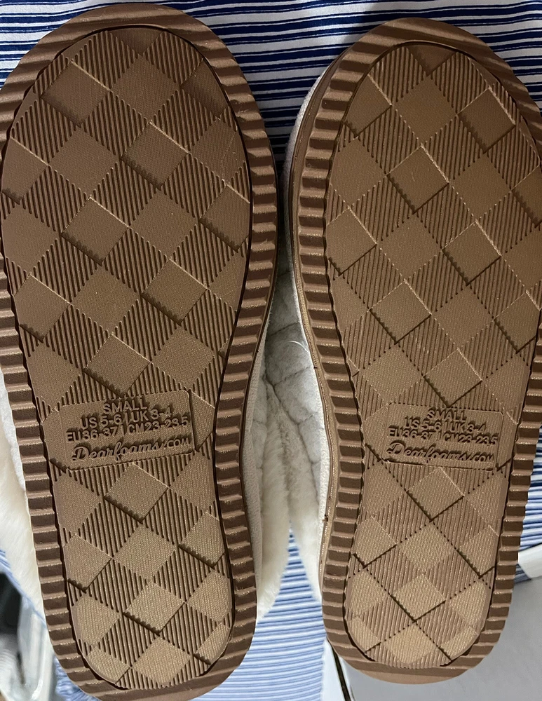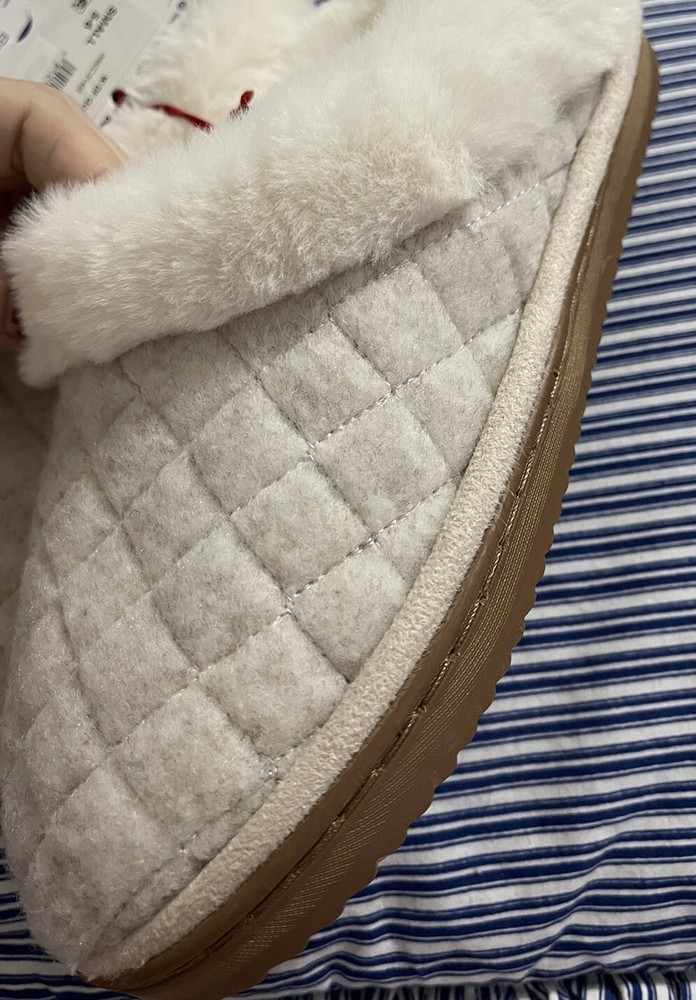 Pamper your feet with these cozy and comfortable Dearfoams Quilted Scuff Slippers. These slip-ons come in a classy oatmeal color with a solid pattern, perfect for women who value both style and comfort. The slipper features a round toe shape, quilted accents, and a soft fabric upper material that adds a sense of elegance to your loungewear. The slipper is designed with super comfortable memory foam that molds to your feet, making walking on hard floors a blissful experience. The slipper is also equipped with the No Sweat feature, which prevents your feet from sweating, keeping them cool and dry all day. These Dearfoams Quilted Scuff Slippers are perfect for women with US shoe size S 5-6, making them an ideal addition to your wardrobe.