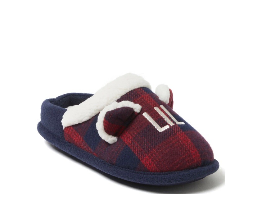 The Dearfoams Lil Bear Plaid Clog Slippers in size 4-5 are cozy and comfortable unisex kids' shoes. Featuring a cute bear theme, these multicolor slip-on clog slippers are designed for comfort with a plush interior. Perfect for keeping little feet warm and snug around the house, these slippers are both stylish and practical for lounging or relaxing. The Dearfoams brand is known for its quality and attention to detail, making these slippers a great choice for kids looking for both style and comfort.