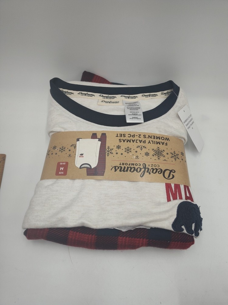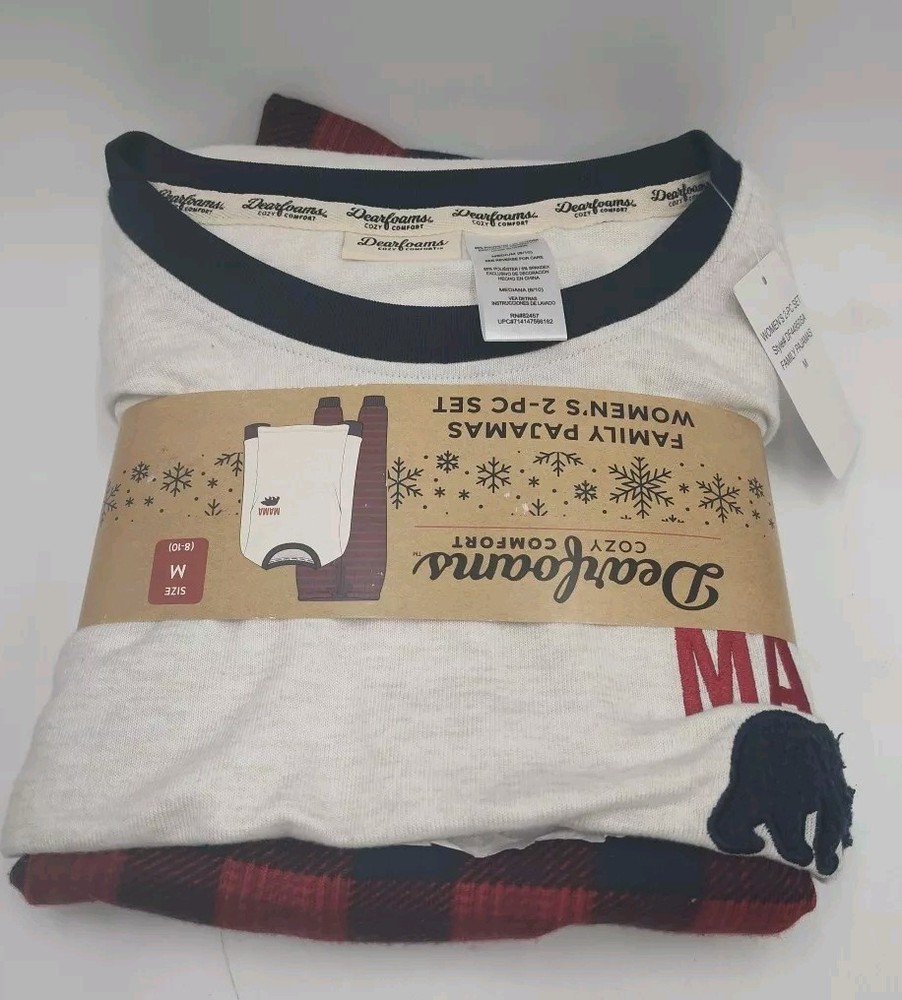 BY:Dearfoams Cozy Comfort, PAPA BEAR Woman's Size Small Pajamas Cozy Comfort Size: Medium 8-10 2 pc Set Long Sleeve 95% Polyester 5% Spandex