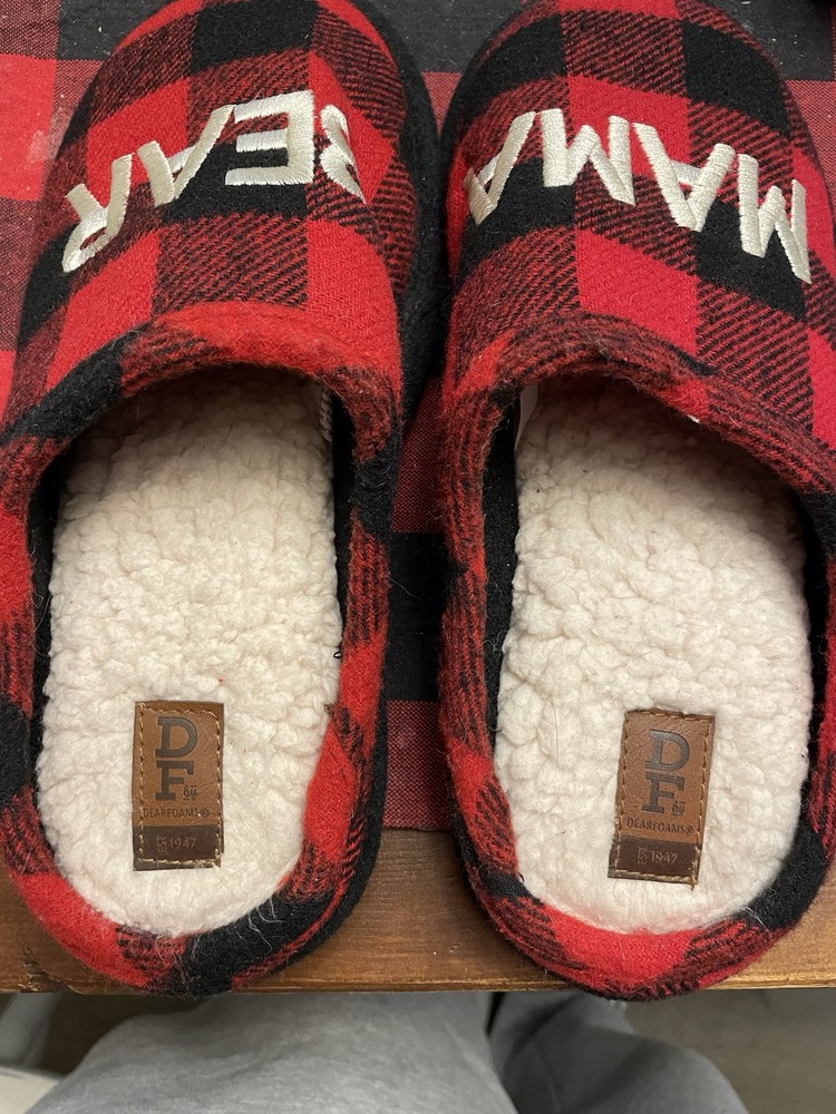 Cozy up in these Dearfoams Women's Mama Bear Slippers, perfect for those crisp fall days, chilly winter evenings, or even a cuddly spring morning. With their plush faux fur upper and soft padded interior, these slippers offer the ultimate comfort for your feet. The cute Buffalo Plaid design adds a touch of festive fun, making them an ideal choice for holiday gifts or a thoughtful treat for yourself. Crafted with a cushioned memory foam footbed and a durable rubber outsole, these slip-ons provide both warmth and stability. The round toe ensures a comfortable fit, while the embroidered accents add a charming touch. Whether you're lounging at home or stepping out for a casual occasion, these slippers are designed to keep your feet happy and stylish.