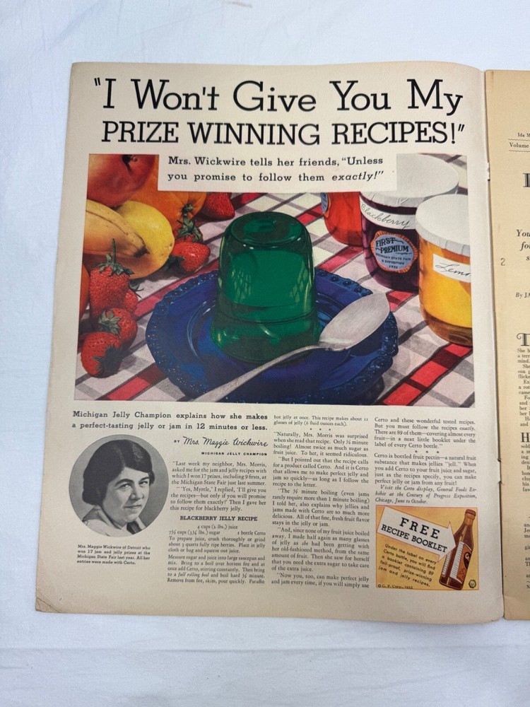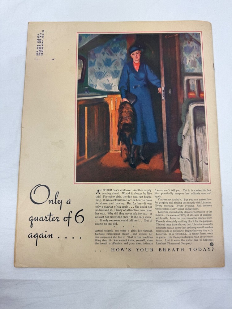 December 1928 edition of Better Homes & Gardens magazine. Features ads for household goods, kitchen, fashion, travel, cars, hygiene, etc. The back page is torn off but included with the magazine. Includes many color ads such as Rogers Brushing Lacquer, Acroflash heating unit, General Electric vacuum, and more. Non-color ads include Plymouth and more. Magazine measures 8.5 x 12” tall. I cannot guarantee that all pages are accounted for. Let me know if you are looking for anything specific. I combine shipping for multiple orders.
