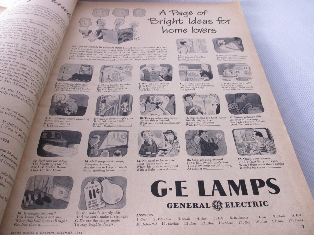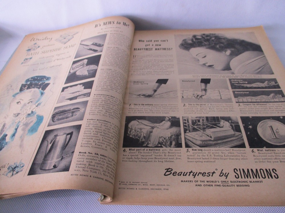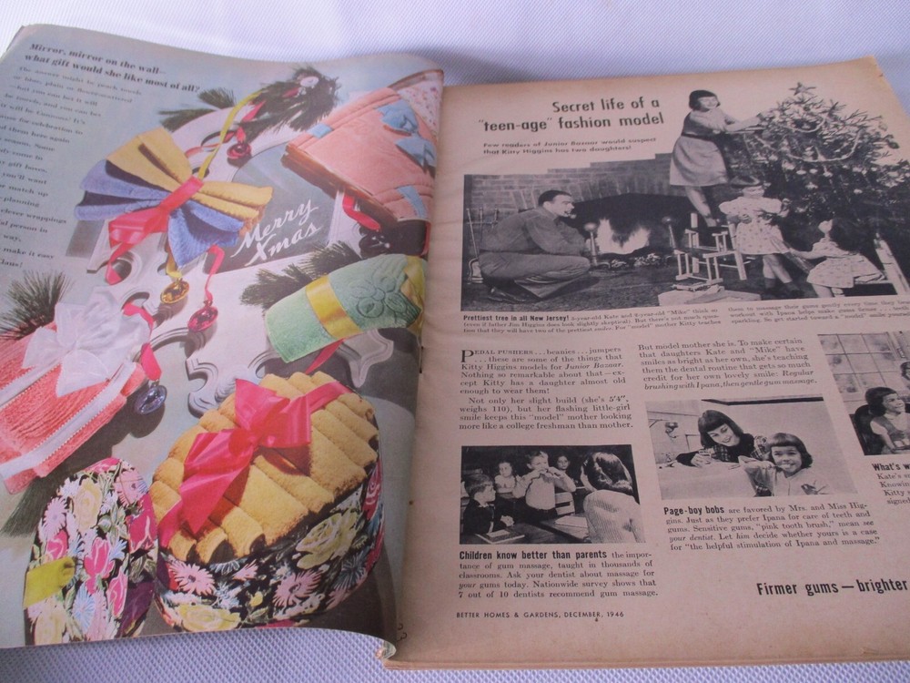 December 1946 Better Homes & Gardens Magazine Buick, GE, Swirt's Beef, Diamond Walnuts Vintage Ads, solid vintage issue, has some wear from reading and storage, dings on the spine and edge dings, spine is solid and pages are tight, good looking magazine for its age. (50762 Hi! And thanks for looking. Hope I can send something good your way. I pack items with care and work my best to get items to you in the best of condition. I have been collecting for over 30 years and do my best to describe everything as well as possible. If I missed something feel free to ask.