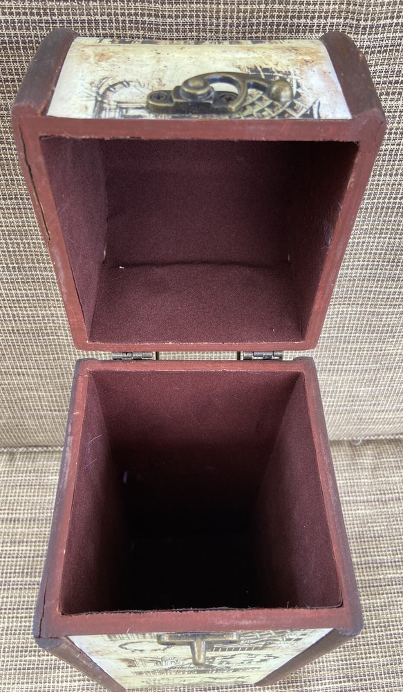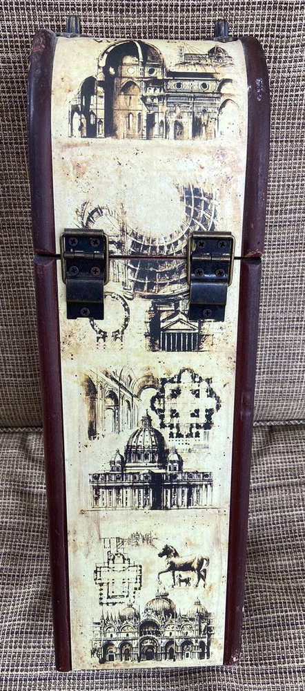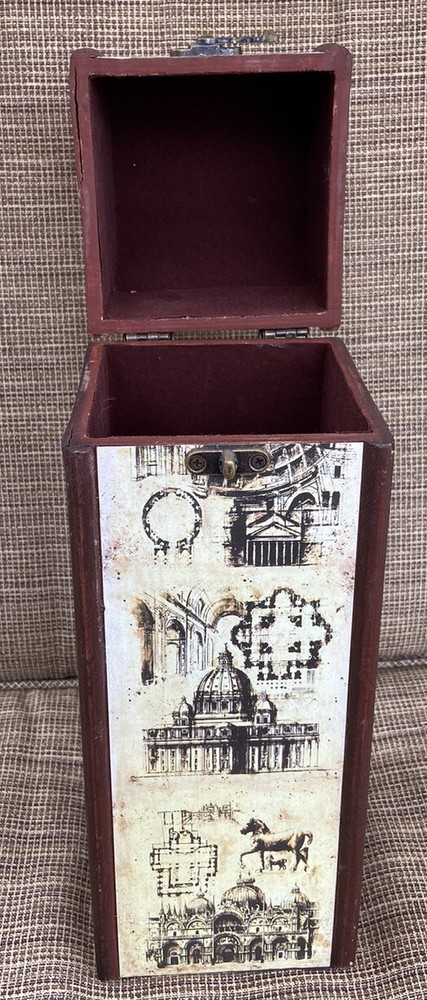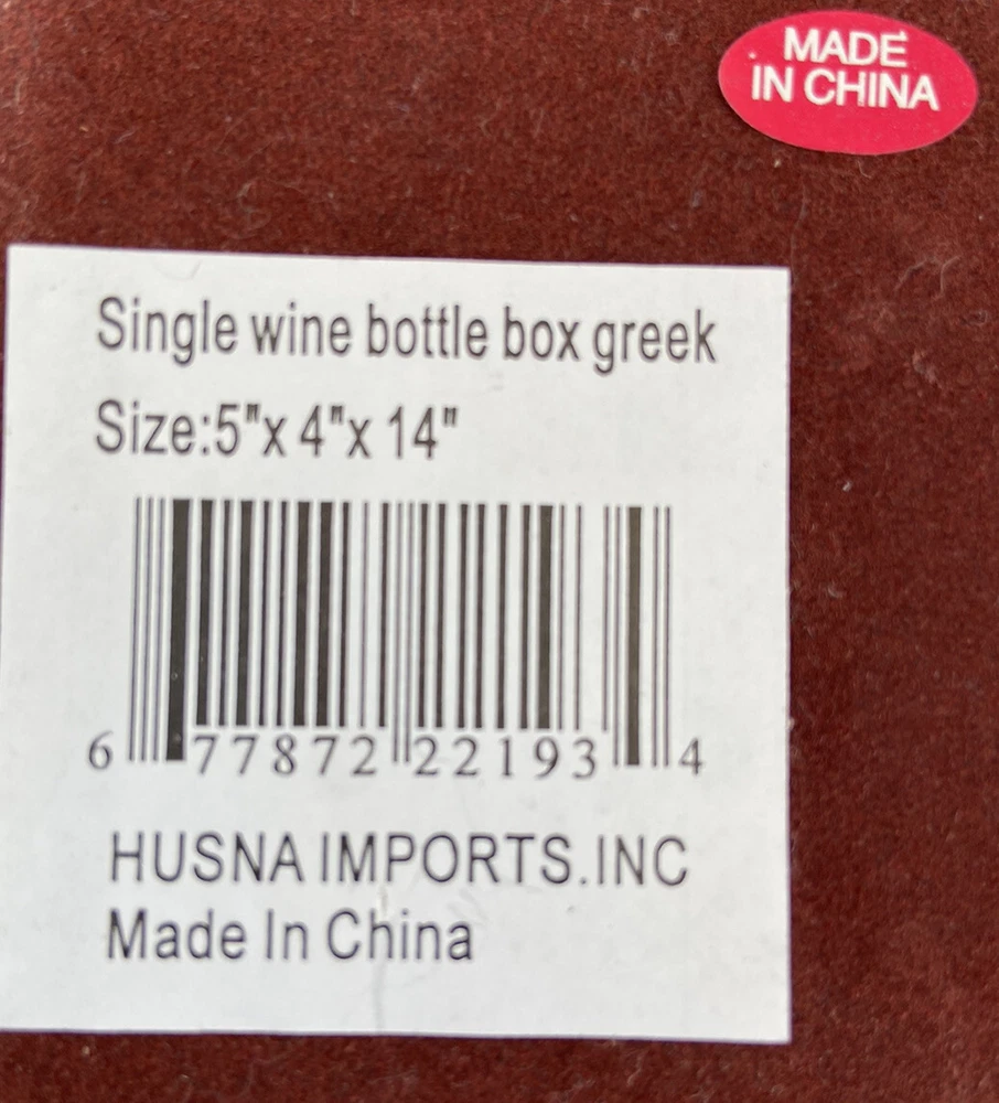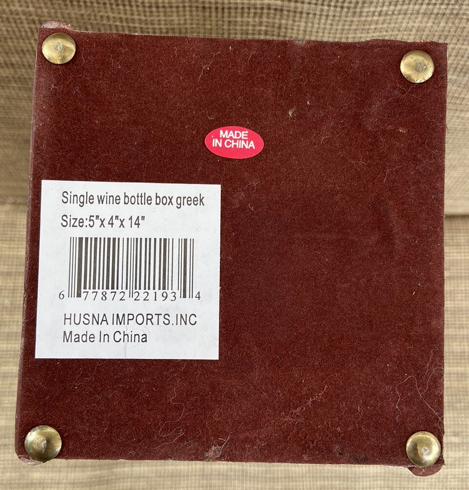 Decorative Wine Bottle Design Wooden Gift Box GREEK THEMED with latch no handle on top. Preowned in good condition, still has tag on bottom of box. Measures 5" x 4" x 14". Please look at pictures for more details. I am more than happy to combine for the best shipping price if you purchase more than one item from the store AND wait for a combine invoice. Thanks for viewing and please see my other listings! https://www.ebay.com/str/beckymt525