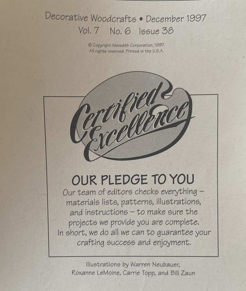 This is a great issue of Decorative Woodcrafts magazine from December 1997, featuring a plan sheet from Better Homes. The magazine is filled with inspiring woodcraft plans and ideas for your home and garden. The publication is written entirely in English and is a bimonthly release. The magazine is a back issue and has not been modified. It is in very good condition and is a must-have for any woodcraft enthusiast. Whether you are a beginner or an experienced woodworker, this magazine is sure to provide you with inspiration and ideas for your next project. Please look at photos carefully for details. Magazine is in good condition. There is minor wear on the cover(seen in photos). Comes from a smoke free home. Please message with any questions and thanks for looking! ***I am open to reasonable offers. Please send me a direct message, we'll chat***