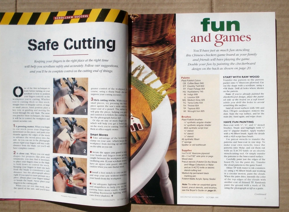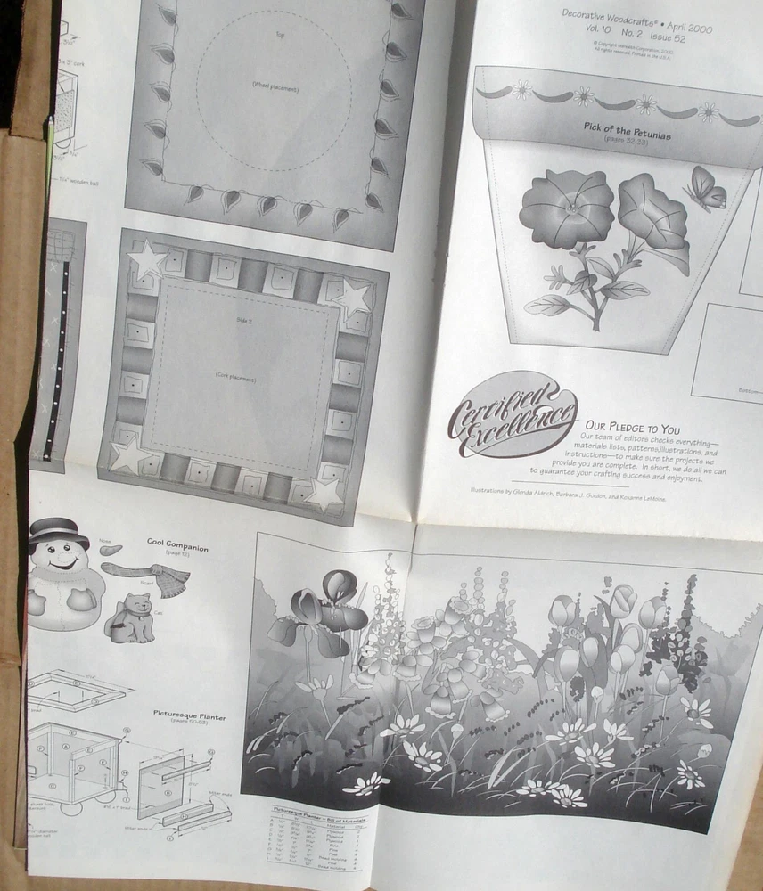 Decorative Woodcrafts magazine, 1999 / 2000, Lot of 2 issues. 46 pages each. Each issue includes a folded pull-out pattern page. Proceeds benefit Homeless Pets....