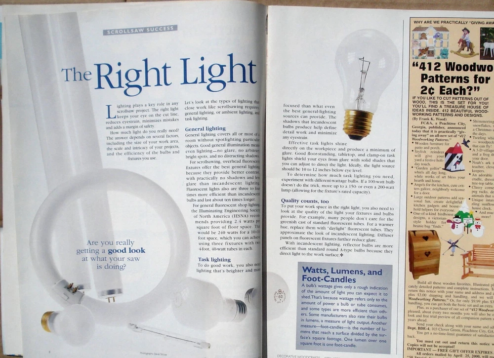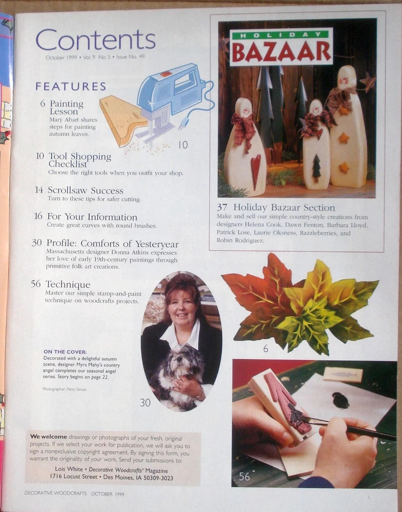Decorative Woodcrafts magazine, 1999 / 2000, Lot of 2 issues. 46 pages each. Each issue includes a folded pull-out pattern page. Proceeds benefit Homeless Pets.