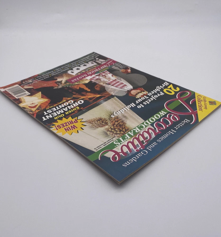 Decorative Woodcrafts Magazine December 1996 With Patterns Better Homes Gardens. Condition is Used. Shipped with USPS Ground Advantage. The binding is tight/excellent. The cover shows only minor signs of shelf wear. The pages are free from writing, highlighting, underlining, tears, stains, and dog ears. Comes from a pet free, smoke free home. Any orders of more than one item may receive a partial refund for combined shipping when the items ship. This includes items from multiple different listings.