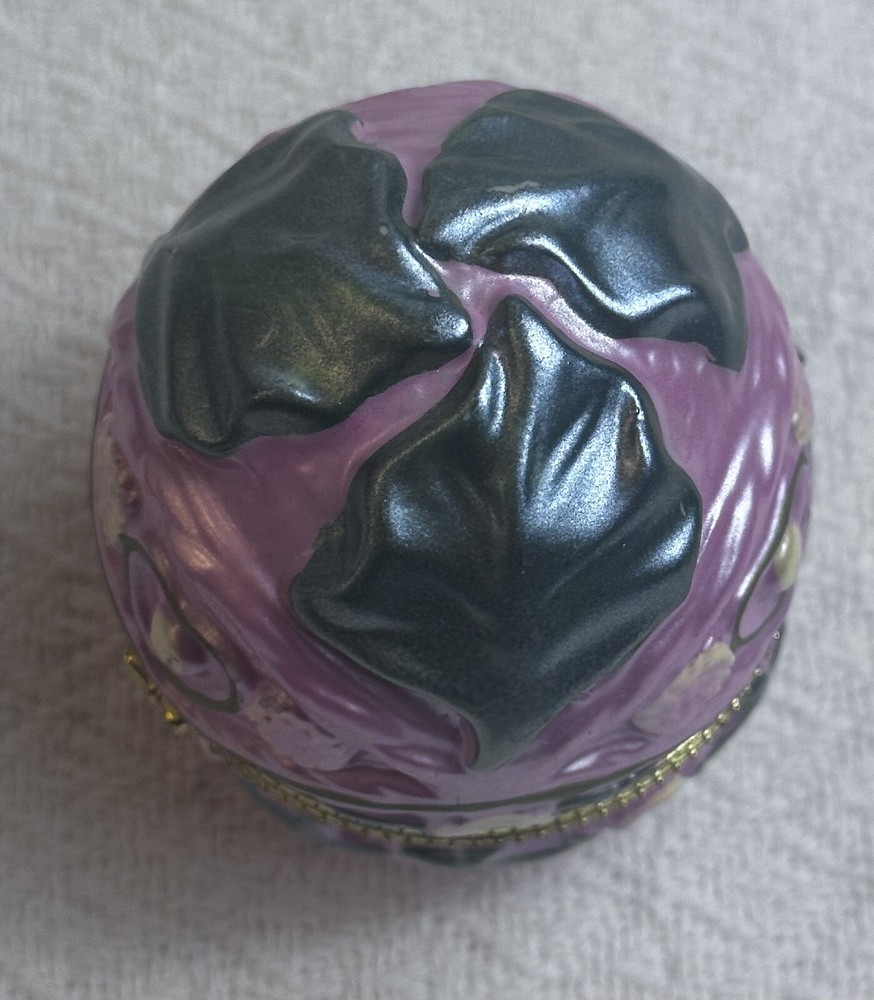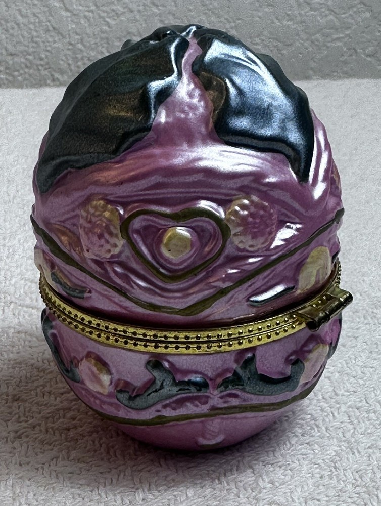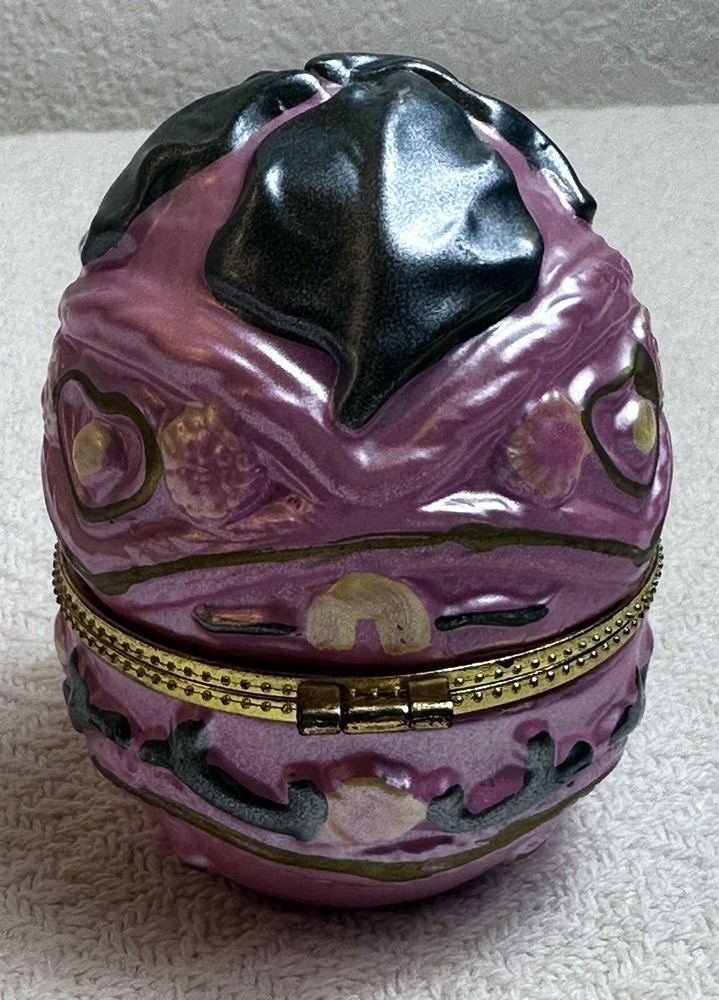 Deluxe Imports Egg Shaped Trinket Box Intricate Raised Design 3.25" High....