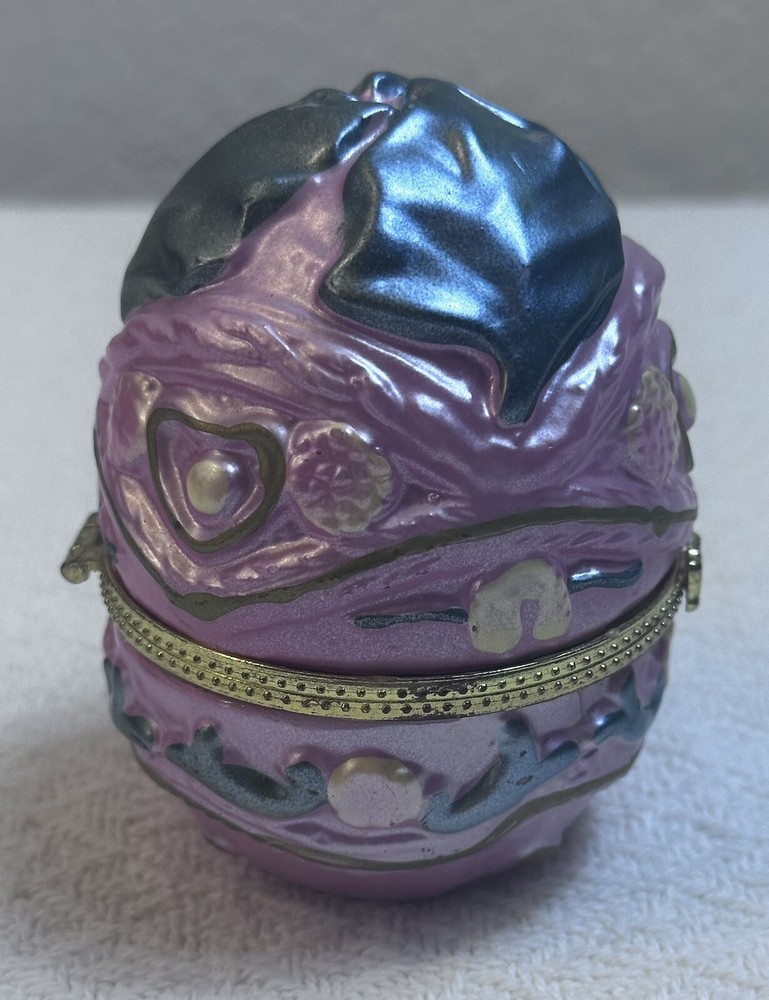 Deluxe Imports Egg Shaped Trinket Box Intricate Raised Design 3.25" High.