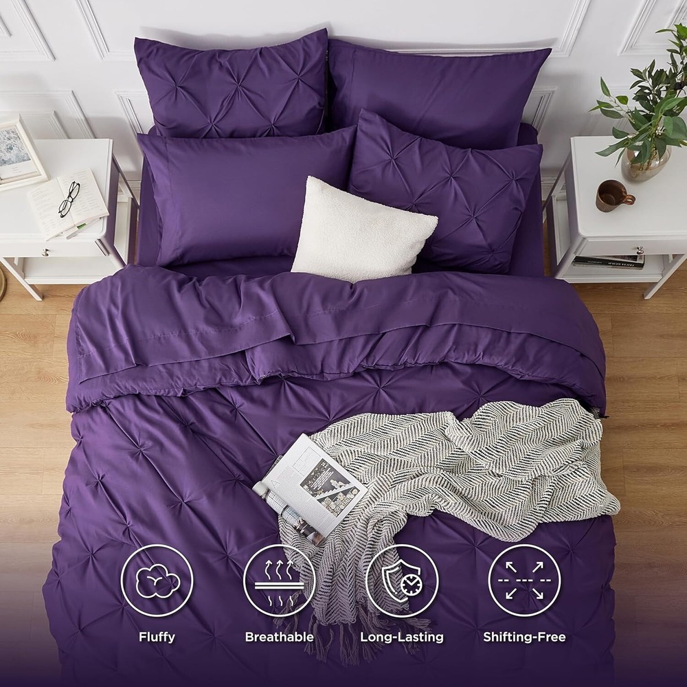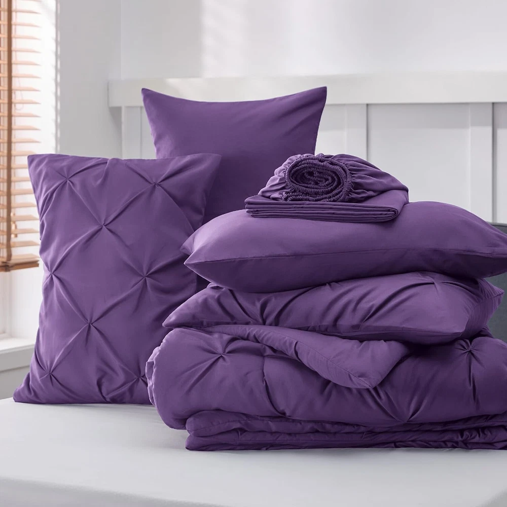 Deluxe King Size Pintuck Comforter Set - Elegant Purple Bedding for Cozy Living ‹ › ‹ › ‹ › ‹ › ‹ › ‹ › ‹ › ‹ › ‹ › ‹ › ‹ › Deluxe King Size Pintuck Comforter Set -Elegant Purple Bedding for Cozy Living Transform Your Bedroom Elegant Home Decor: This deluxe king bedding set features a gorgeous pinch pleat design with an intricate geometric pattern, bringing undeniable sophistication to any bedroom. Gift of Elegance: Ideal for any occasion, such as Mother's Day, Valentine's Day, or Christmas—gift your loved ones the charm of elegant coziness. Supreme Comfort Cloud-like Warmth: Enjoy the perfect balance of weight and warmth with 's thoroughly tested microfiber filling blend, creating an inviting sleeping space reminiscent of cozy clouds. Extra Soft: Experience exceptional softness with the brushed microfiber cover that ensures comfort without rustling noise for a peaceful night's sleep. Effortless Care Easy Maintenance: Made with microfiber fabric, this spring bedding resists fading, shrinking, and seam slippage after washing. Conveniently machine wash separately in cold water on a gentle cycle and tumble dry low. Inclusive Bedding Set This king set includes all essentials for a snug and stylish bed: 1 Comforter (102" x 90") 2 Pillowcases (20" x 40") 2 Pillow Shams (20" x 36" + 2") 1 Fitted Sheet (78" x 80" + 14") 1 Flat Sheet (108" x 102") Why Choose Our Deluxe Comforter Set? Indulge in the elegance and coziness of our Deluxe King Size Pintuck Comforter Set, a perfect blend of style and comfort that transforms your bedroom into a sanctuary. With cloud-like warmth, exceptional softness, and easy care, this bedding set provides a restful retreat every night. Make your bedroom not just a place to sleep, but an inviting haven. Order your set today and experience the luxury of restful nights and stylish mornings. Shipping Free & Fast Shipping - We offer free shipping to most of the USA with a normal delivery time of 3-7 days. However, due to the current situation, additional delivery time (up to 3 weeks) may be required for some items. Alternative Carriers - We may use alternative carriers (e.g. USPS, FedEx, UPS, etc.) to ensure your package arrives safely and on time. Due to the use of multiple carriers, we are unable to provide a tracking number automatically. Handling Time - Orders are processed and shipped within 1-2 business days of receiving cleared payment. Shipping Restrictions - Shipping to Alaska, Hawaii, Puerto Rico, Guam, and other US territories may incur shipping charges or delivery restrictions. Please contact us before ordering, or your order can be refunded/cancelled. State Restrictions - There may be restrictions based on your state of purchase. For example, certain items may not be shipped to California due to state regulations. Contact for Tracking Updates - If you require tracking updates or have any concerns about the delivery of your order, please feel free to contact us, and we will be happy to assist you. Return 30-Day Hassle-Free Returns - We want you to be completely satisfied with your purchase. If you are not, you can return the item within 30 days of receiving it for a full refund or exchange. Easy Return Process - To start a return, simply contact us and we will provide you with a prepaid return shipping label and detailed instructions. Restocking Fee - There are no restocking fees for returns. However, the buyer is responsible for return shipping costs if the return is not due to a seller's error. Refund Processing Time - Refunds will be processed within 5 business days of receiving the returned item in its condition. Payment We accept all major credit cards, PayPal, and Apple Pay for your convenience. Your payment information is secure and encrypted to ensure a safe and seamless transaction. Please complete your payment within 3 days of purchase to avoid any delays in shipping. Feedback Your feedback is extremely important to us. We strive to provide the best products and customer service possible. If you are satisfied with your purchase, please take a moment to leave us a positive review. If you have any concerns or issues with your order, please contact us before leaving negative feedback. We are committed to resolving any problems and ensuring your satisfaction. Contact Us If you have any questions or concerns, please feel free to out to our customer support team. You can contact us through the eBay messaging system. We are available Monday to Friday, 9:00 am to 5:00 pm EST, and we will do our best to respond to your inquiry within 24 hours. Buy it now and enjoy a pleasant shopping experience! Set Includes: Comforter,Fitted Sheet,Flat Sheet,Pillowcase,Pillow Sham Material: Microfiber,Polyester,Brushed Microfiber Features: Hypoallergenic,GentleSoft™,Soft,Comfortable,Easy Care,Resists Fading,Resists Shrinking,Resists Seam Slippage Theme: Elegance Care Instructions: Do Not Bleach,Machine Wash,Tumble Dry Low Department: Unisex Baby & Toddler,Kids,Teens,Adults Room: Bedroom Size: King Type: Comforter Set Color: Purple Fill Material: Microfiber Pattern: Geometric Insulation: All Seasons Number of Items in Set: 7 Style: Elegant Season: All Closure Type: No Closure Thread Count: 200 or Less GSM (Grams per Square Meter): 150 to 300