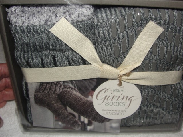 New original packaging color Gray Elevate your sock game with these Demdaco men's cozy knit socks in gray. Made with high-quality materials, these socks are perfect for keeping your feet warm and comfortable all day long. The one size fits all design ensures a comfortable and snug fit for every man. The socks feature a classic and timeless design that can be worn with any outfit. The brand name Demdaco is synonymous with quality and durability. These socks are perfect for everyday wear or for special occasions. Add these Demdaco men's cozy knit socks to your wardrobe today!