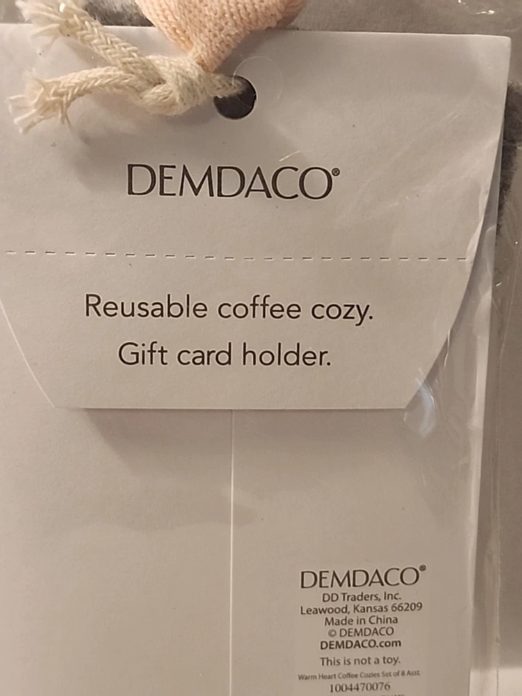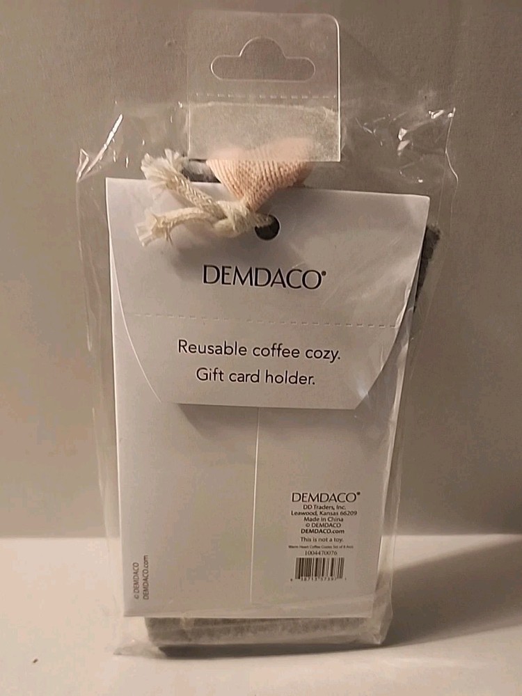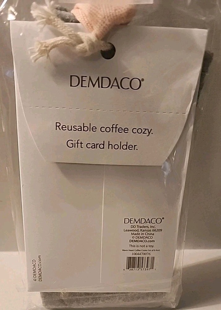 The Demdaco Reusable Coffee Cozy & Gift Card Holder is a two-piece set that includes a cozy and a gift card holder, both featuring a candy cane pattern in a round shape. Made of fabric in a gray color, this contemporary piece is decorated and perfect for all occasions, especially for mom. This coffee cozy and gift card holder set is a unique and thoughtful gift for any mom, especially in the holiday season. Made by the brand Demdaco, this set is a stylish addition to any kitchen or dining area. New Thank you for your time looking.