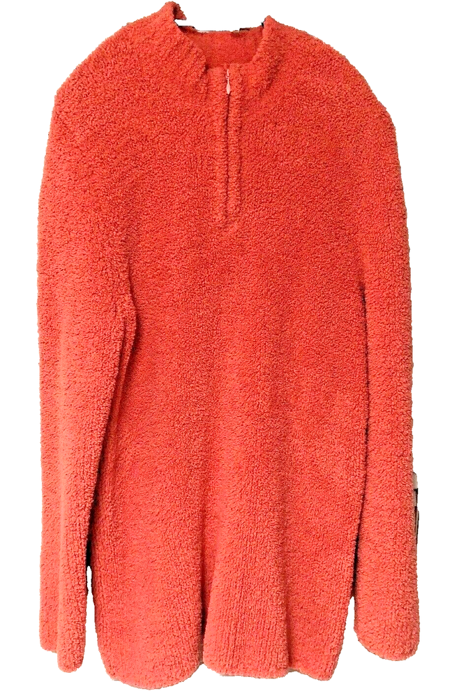 Plush 1/4 Zip Coral Tunic Sweater Women's M Mockneck Fuzzy Texture QVC Retired Good condition - normal wear. 1/4 zip. Fuzzy texture. Warm and cozy. Coral. Long sleeves. Pocket-free. QVC A 45350. Medium. Shoulder 18. Bust 39. Inner sleeve 19. Length 30. Polyester. Experienced seller. FAST SHIPPING - usually ships within 24 hours.