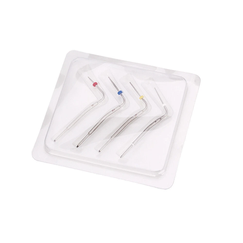 Feature: Model:Op-fill can be heat to 200 º C in 3s, can be melting all kinds of Gutta percha.It support the vertical compaction of Gutta percha for the root canal filling. It is intended exclusively for use by trained dentiet only in clinic or laboratory. Safety caution: The temperature of tip is very high during the surgery , in order to prevent from being burned, please avoid it directly contact to the soft tissue. Specification: Charging system Operating Voltage DC.3.6V Adaptor Input: AC 100V/220V 50-60HZ Power: 10w Charging time 4 hours Packing size: 165*125*38mm Usage: Heat: Press the button to heat the tip, the Led indicator light red.The tip can reach working temperature within 3 second. Charge:Put the obturation pen onto the charging base, the LED indicator light blue.The unit should be continuous charging more than 8 hours from low voltage to full charge. Package includes: Charging Base-----1 PC Obturation Pen-----1 PC Pen Tip -----2PCS ***************************** 4pcs Dental Heated Needle tip 4 Pieces/Pack Size: F, XF, FM, M Used for Obturation Gutta Percha Endo System ***************************** FDA Statement: The sale of this item may be subject to regulation by the U.S. Food and Drug Administration and state and local regulatry agencies. If so, you can bid on this item only if you are an authorized purchaser. If the item is subject to FDA regulation, I will verify your status as an authorized purchaser of this item before shipping of the item.