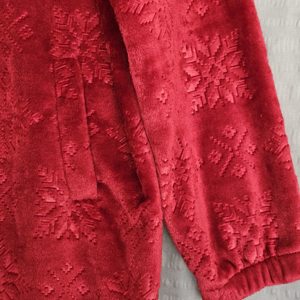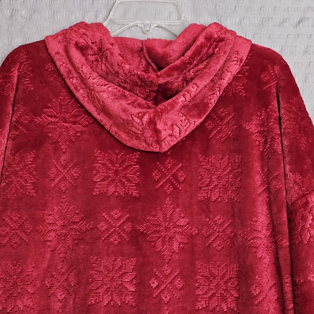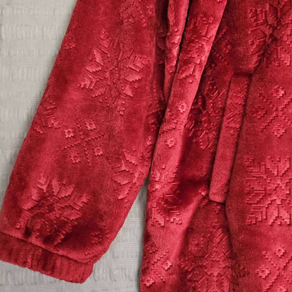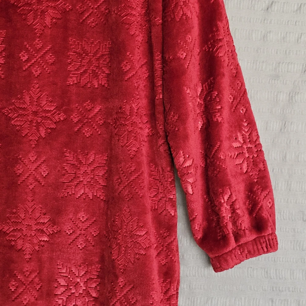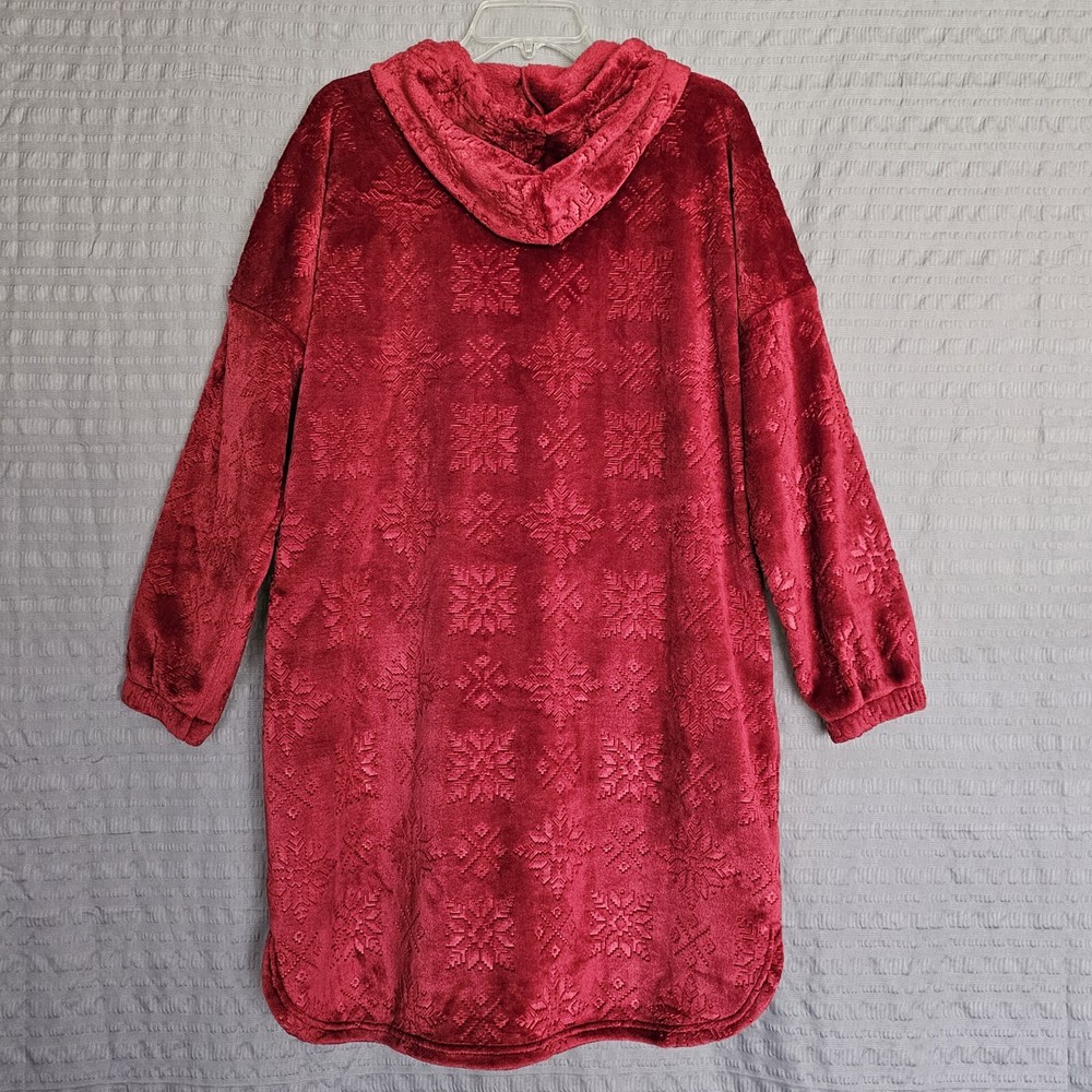 Pullover, above knees short bath robe. Shimmery. Extremely soft plush, yet relatively lightweight, embossed w snowflakes. Deep pockets, loose fitting. Hooded. Chest circumference 52" Length 38" Arm length from top seam at collar at hood 29" Will be shipped via Economy. Will be shipped out within two business days. Be sure to check out our other listings. It would be our pleasure to combine shipping for multiple purchases. We strive to maintain the highest level of customer satisfaction. If on the rare occasion a buyer is dissatisfied with a purchase they have made from our store please contact us to discuss the matter before you leave feedback. We are friendly and approachable, so please feel free to get in touch to voice a concern. Items must be returned in unopened and original condition for a refund. Thank you for supporting our clean and smoke-free, family business.
