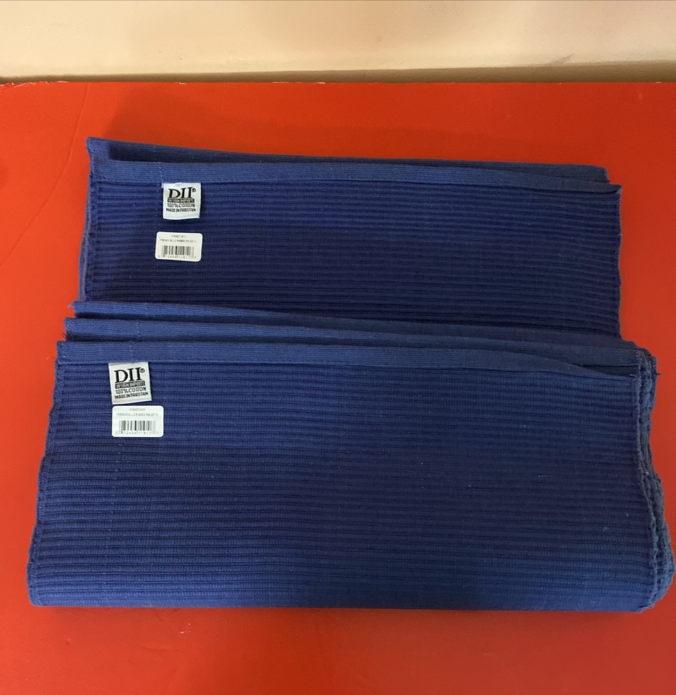 Add a touch of elegance to your dining table with this set of six Design Imports placemats. Made of 100% cotton in a beautiful French Blue color, these rectangular placemats are perfect for all occasions. The solid pattern and modern style make them a great addition to any home decor. Care for these placemats is a breeze, as they are machine washable up to 100°F and fast drying. Each placemat measures 19x14 inches and the set is perfect for both casual and formal dining. Whether you're hosting a dinner party or enjoying a family meal, these placemats are sure to impress.Open box