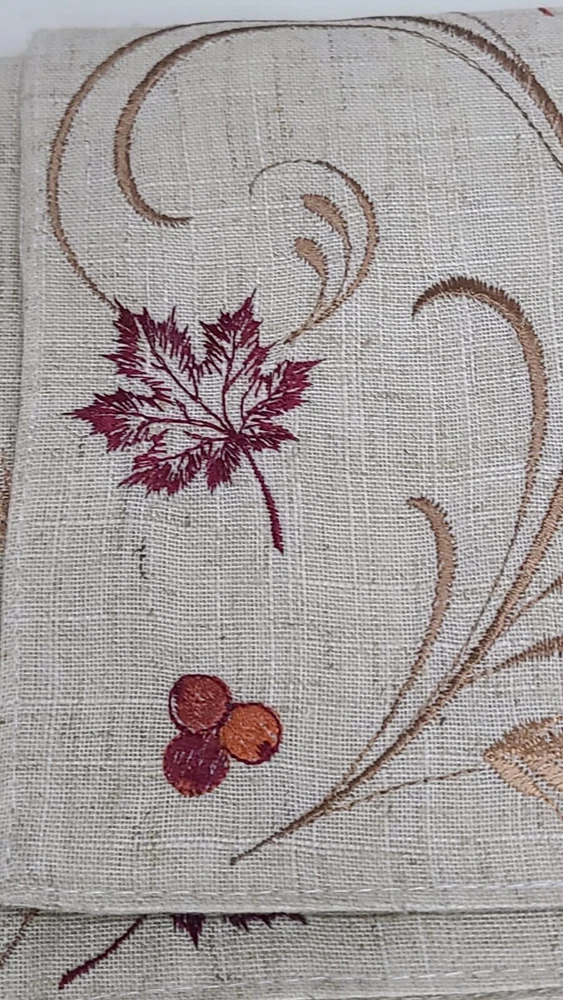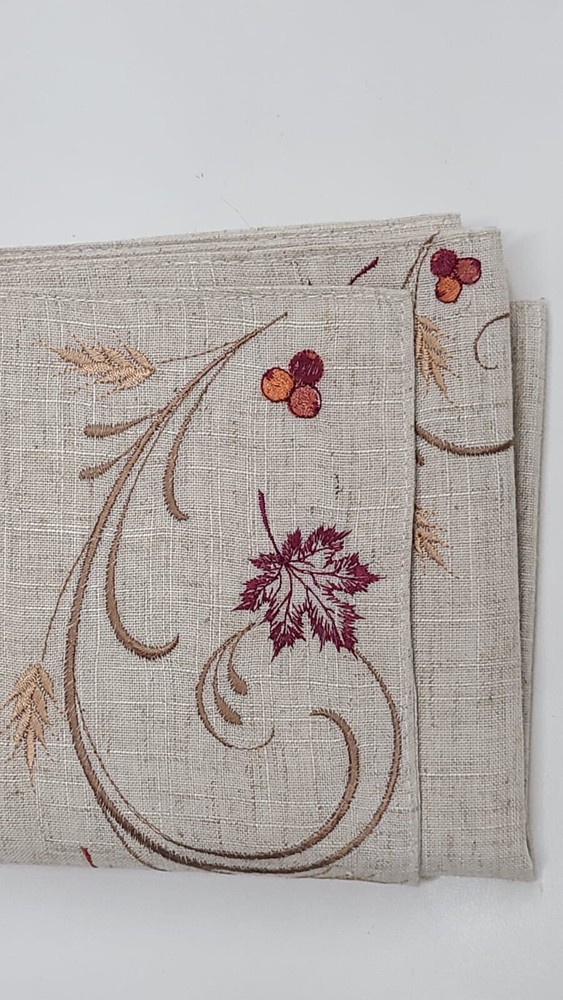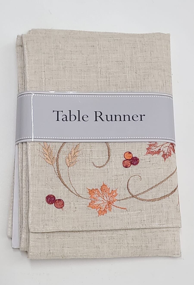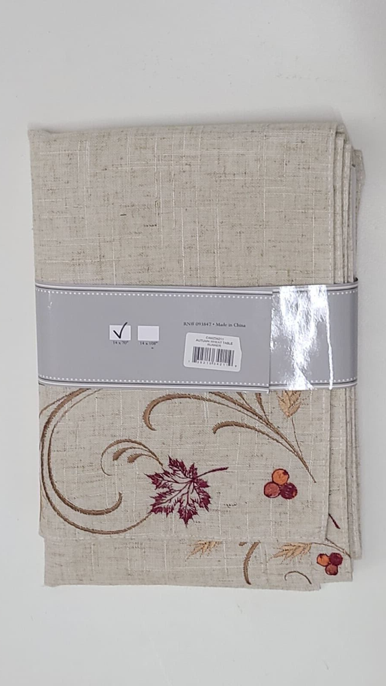 Add a touch of contemporary style to your holiday table with this Design Imports Autumn Wheat Table Runner. Measuring 14x70 inches, the table runner is made of a blend of polyester and linen materials and features an embroidered pattern in multicolor. This rectangular table runner is perfect for any fall-themed occasion and can be easily wiped with a damp cloth for maintenance. The table runner is a unisex design and comes in a unit quantity of 1.